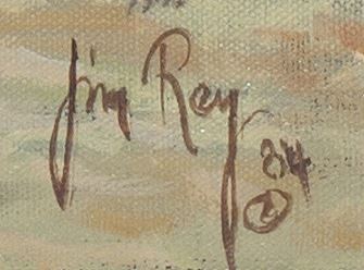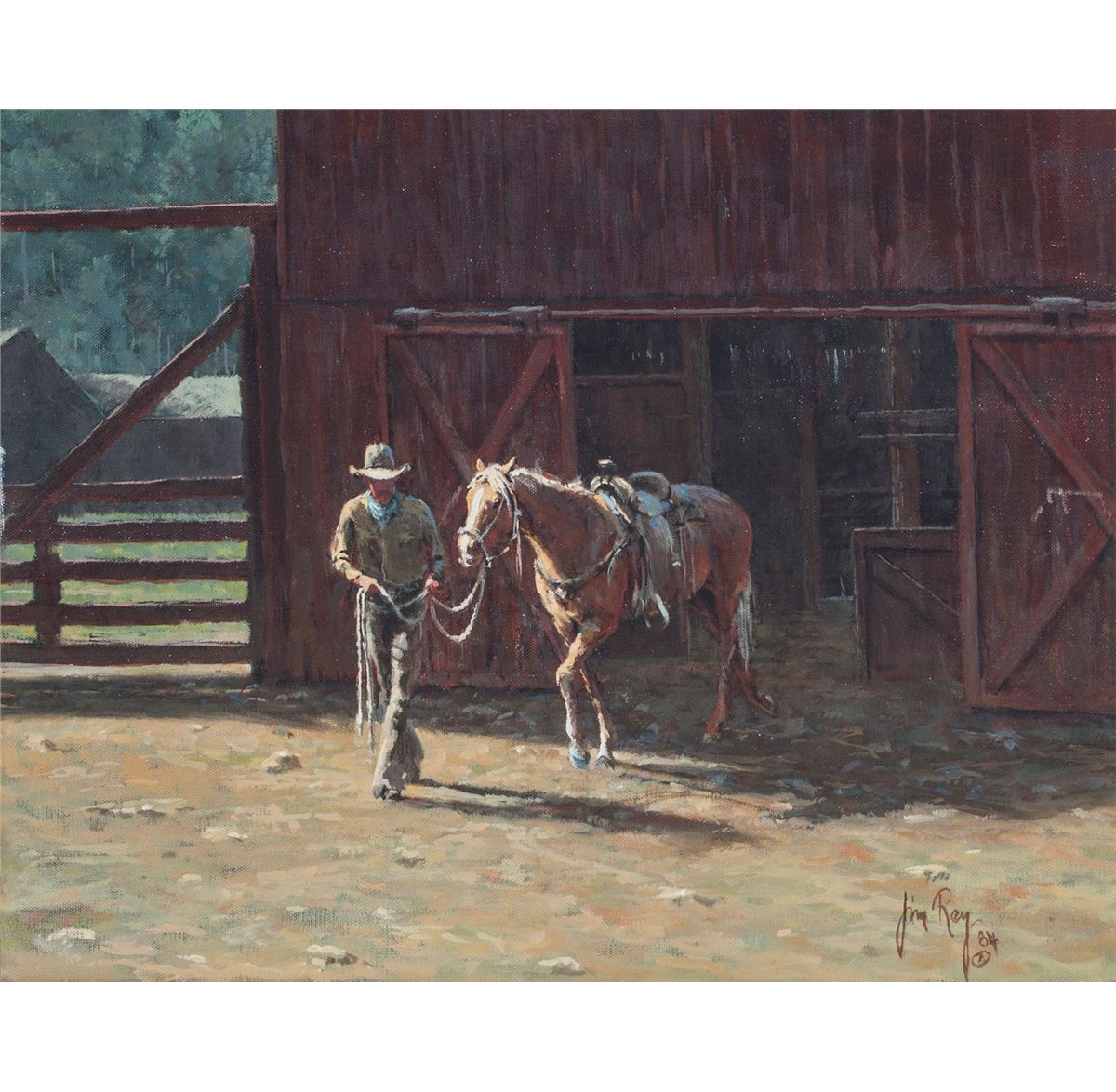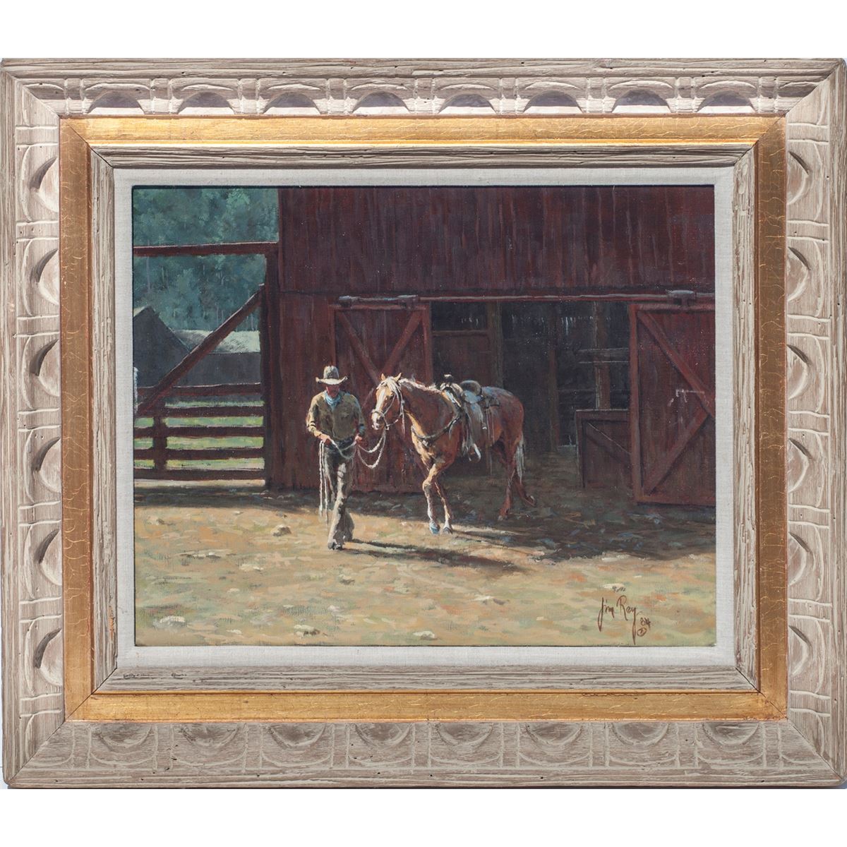 Jim Rey (b.1939). Wesley & His Colt. 16" x 20" oil on canvas. Signed lower right: Jim Rey 84 ©. Titled on stretcher bar. Framed to 24 ½" x 28 ½".
