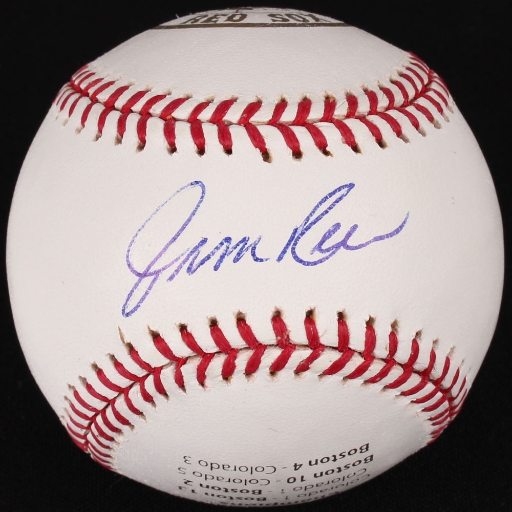 Official 2007 World Series Career Stat Baseball. Hand-signed in blue ink pen by Jim Rice (Red Sox, HOF). The autograph includes an Legends Autograph hologram and matching COA for authenticity purposes.