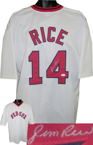 Jim Rice played his entire career for the Boston Red Sox from 1974 to 1989. An 8-time American League (AL) All-Star, he was named the AL's Most Valuable Player in 1978 after becoming the first major league player in 19 years to hit for 400 total bases, and went on to become the ninth player to lead the major leagues in total bases in consecutive seasons, and joined Ty Cobb as one of two players to lead the AL in total bases three years in a row. HRice was inducted into the Baseball Hall of Fame on July 26, 2009. Jim Rice has hand signed this Boston Red Sox White Prostyle Jersey. JSA Hologram and Certificate of Authenticity.