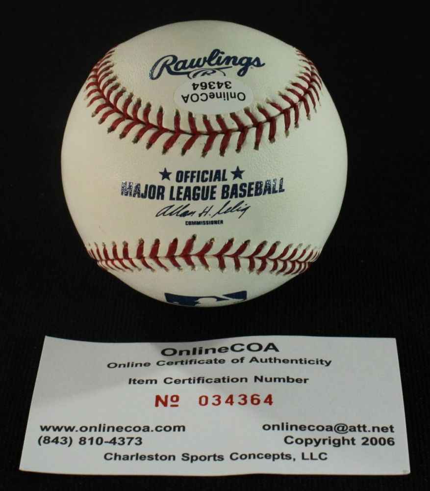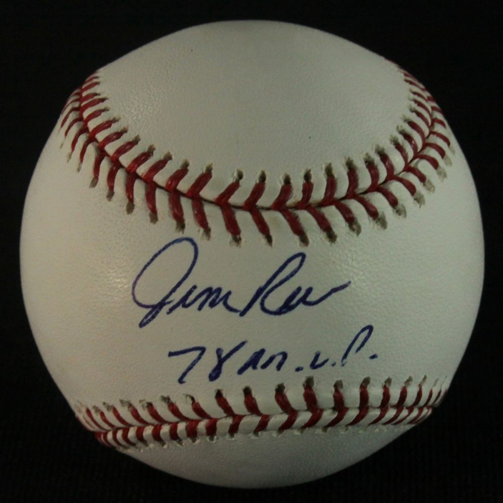 Official Major League Baseball hand-signed and inscribed in blue ink by Jim Rice (Red Sox HOF). The autograph includes a Global Authentics (GA) hologram and matching COA for authenticity purposes.