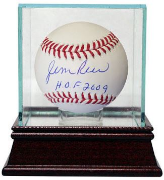 Jim Rice played his entire career for the Boston Red Sox from 1974 to 1989. An 8-time American League (AL) All-Star, he was named the AL's Most Valuable Player in 1978 after becoming the first major league player in 19 years to hit for 400 total bases, and went on to become the ninth player to lead the major leagues in total bases in consecutive seasons, and joined Ty Cobb as one of two players to lead the AL in total bases three years in a row. Rice was inducted into the Baseball Hall of Fame on July 26, 2009. Jim Rice has hand signed this Official Major League Baseball with HOF 2009 inscription. MAB Hologram and Certificate of Authenticity from Athlon Sports. Note: Glass Display Case shown IS included