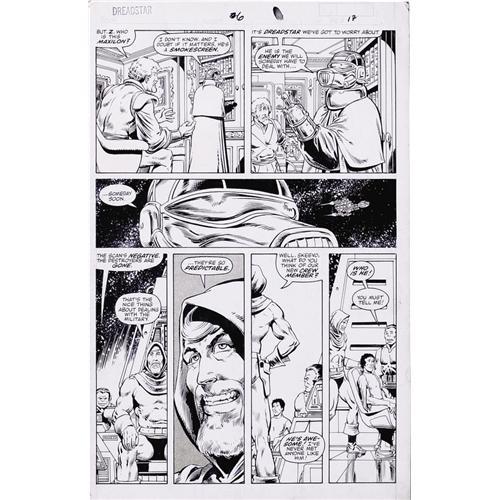 <B>Jim Starlin and Joe Rubinstein - Dreadstar #6, page 17 Original Art (Marvel, 1983).</B></I> Z is not as concerned with the charismatic Maxilon as he is with his enemy, Vanth Dreadstar, in this page from the story, "Siege." The image area measures 10" x 15" and the condition is Excellent.<BR><BR><b>Shipping:</b> Small Flat (<a target="_blank" href="http://www.heritageauctions.com/common/shipping.php">view shipping information</a>)