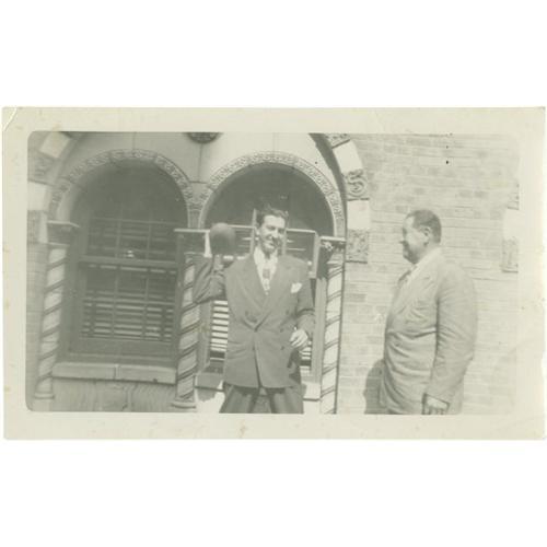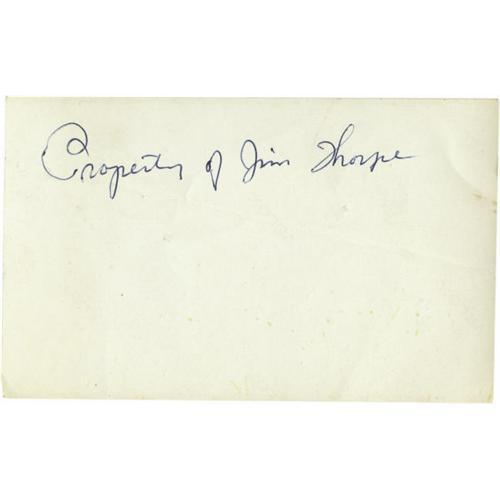 <B>Jim Thorpe Signed Photograph.</B></I> Snapshot measures 3.5x5.75" in size and pictures Thorpe posing with a man holding a football. Blue ink inscription on verso rates 10/10, and reads, "Property of Jim Thorpe." Photo shows light creasing but still presents extremely well. <I>LOA from PSA/DNA.</B></I> <BR><BR><B>Important notice:</B> Heritage usually auctions material at the rate of 200-250 lots per hour. On some occasions eBay Live bid software or the Internet may not be able to keep up with the pace of the auction. We recommend placing a realistic absentee bid now as insurance to avoid disappointment. Occasionally the auctioneer may eliminate or reject an eBay Live bid, and the auctioneer may also reopen a lot after the close of the eBay live bidding (usually because we missed an audience bid), and may reject your bid even if it shows you as the winning bidder. By bidding via eBay Live, you agree that Heritage may award the lot to another bidder at its sole discretion under the circumstances described above or any other reasonable circumstances. Since eBay bids are not shown to us until we open the lot on the floor, we treat those bids just like floor bids. In most cases the floor responds before the eBay bid is presented to us, due to Internet lag time, so for consistency we have made it a policy that floor bids are always considered first over tie eBay live bids. Also please note that all Heritage lots purchased through eBay Live carry a 22.5% Buyer's Premium. Please make sure you read the Terms and Conditions before you bid. This lot is being auctioned in conjunction with a live floor auction by Heritage Galleries & Auctioneers. All final auction and invoice information will be supplied by Heritage Galleries & Auctioneers, and all other information should be considered preliminary. Lot:19355 <BR><BR><B>Winning Notification and Billing:</B> After the FINAL session in this auction is complete, Heritage will send e-mail and snail mail invoices. This process normally takes several days. All final auction and invoice information will be supplied by Heritage Galleries & Auctioneers, and all other information should be considered preliminary. <BR><BR>This auction will be conducted on a live auction floor and over the Internet through eBay Live. If you choose to place an absentee bid, please take a moment to <font color='#0000ff'><u><a href='http://pages.ebay.com/liveauctions/help/before/laabsentee.html'>learn how eBay Live absentee bidding works</a></u></font><font color='#000000'>