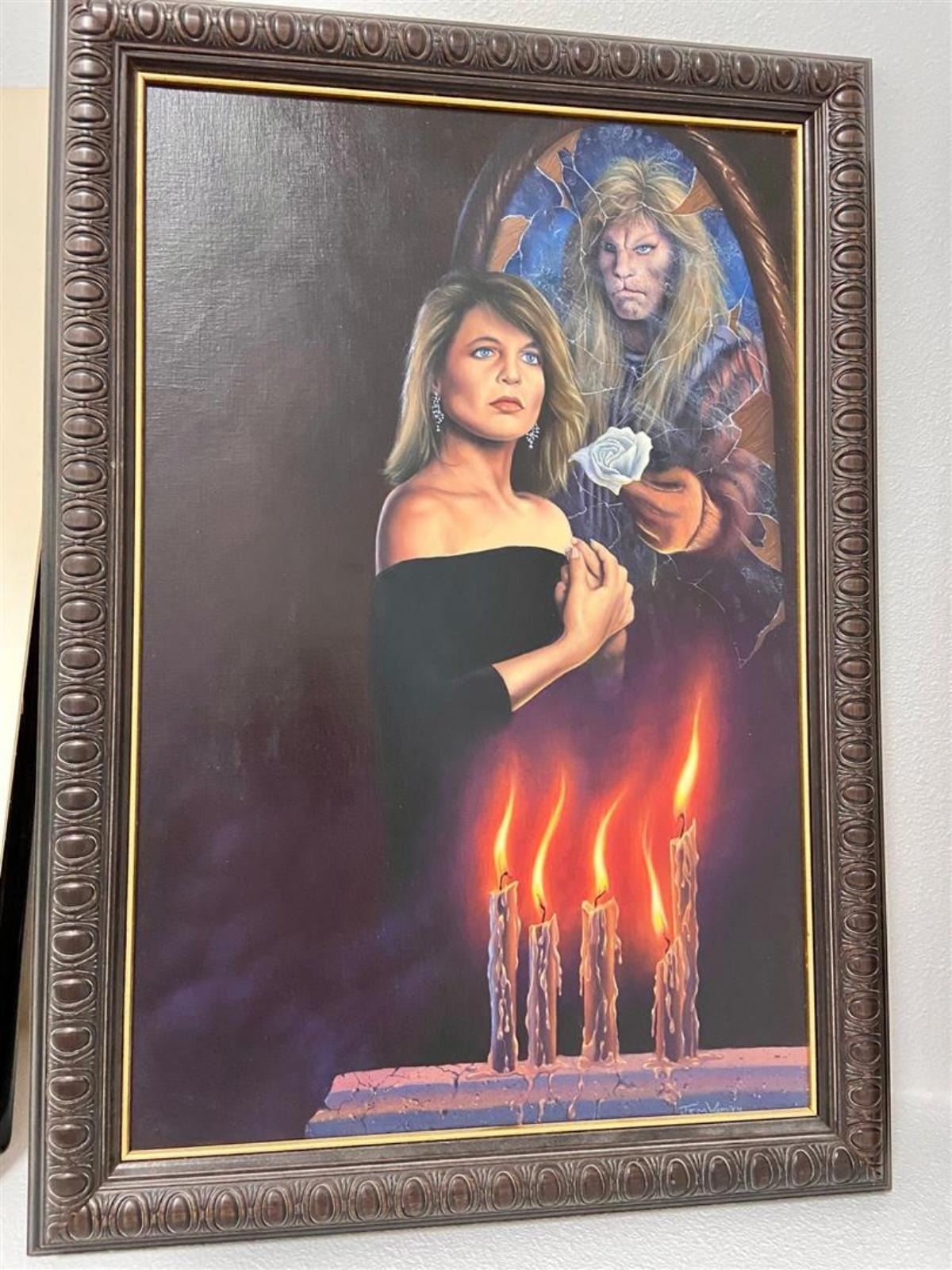A hand-embellished portrait from the "Phantom of the Opera". 26 x 19.5" O.D. Signed lower right.