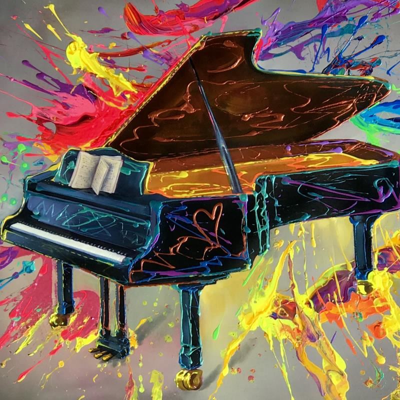 "Very Grand Piano" is an AP numbered, artist embellished limited edition giclee on canvas by Jim Warren. The piece is hand signed and accompanied by a certificate of authenticity. Measures approximately 18" x 24" (image).