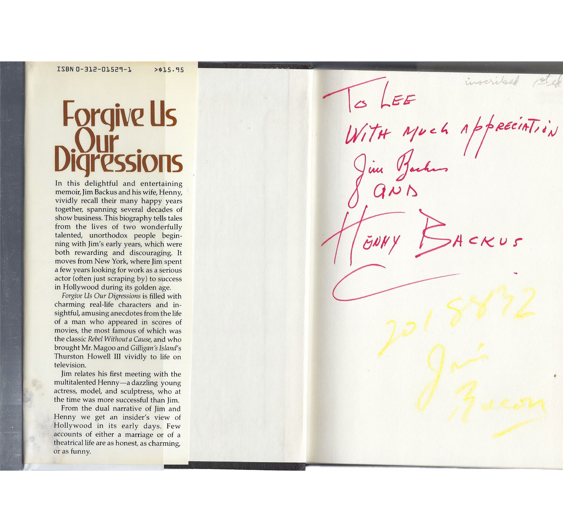Forgive Us Our Digressions signed book autographed by Jim and Henny Backus