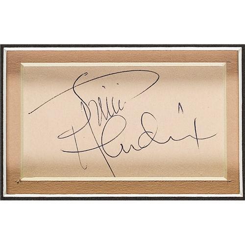 <B>Jimi Hendrix Autograph.</B></I> An exceptional autograph from the most influential guitarist in Rock history, written in blue ink on a pink album page, and matted and framed with a with a clipped dust jacket from a Hendrix biography to an overall size of 13" x 18". A difficult signature to come by, Hendrix handwriting samples become more scarce with each passing year. This one is in Excellent condition. <I>Accompanied by LOA from PSA/DNA.</B></I> <BR><BR><B>Important n