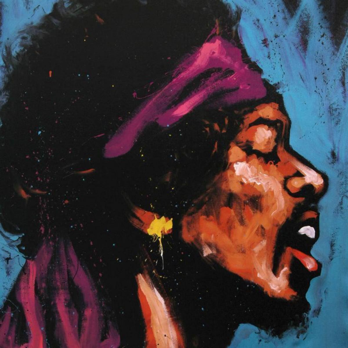 Combining his passions for music and art, David Garibaldi creates stunning visual poetry. "Jimi Hendrix (Bandana)" is a limited edition giclee on stretched canvas, numbered and bearing the artist's authorized signature. This piece comes gallery wrapped. Includes Letter of Authenticity. Measures approx. 28" x 35" (image). Reference #: 237409.