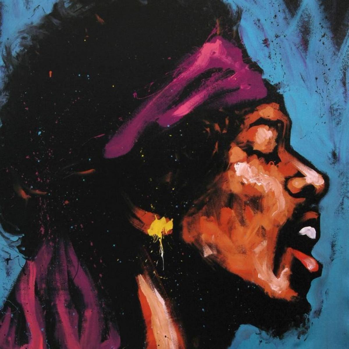 Combining his passions for music and art, David Garibaldi creates stunning visual poetry. "Jimi Hendrix (Bandana)" is a limited edition giclee on stretched canvas, numbered and bearing the artist's authorized signature. This piece comes gallery wrapped. Includes Certificate of Authenticity! Measures approx. 28" x 35" (image).