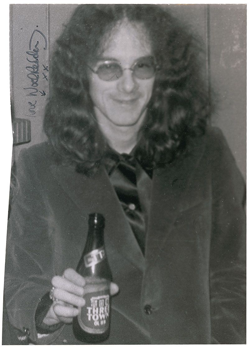 Vintage glossy 6.75 x 9.5 photo of Redding holding a bottle of beer, taken in Sweden in the late 1960s, signed vertically in black felt tip, “Love, Noel Redding xx.” In fine condition, with trimmed edges and scattered light creases and surface marks.