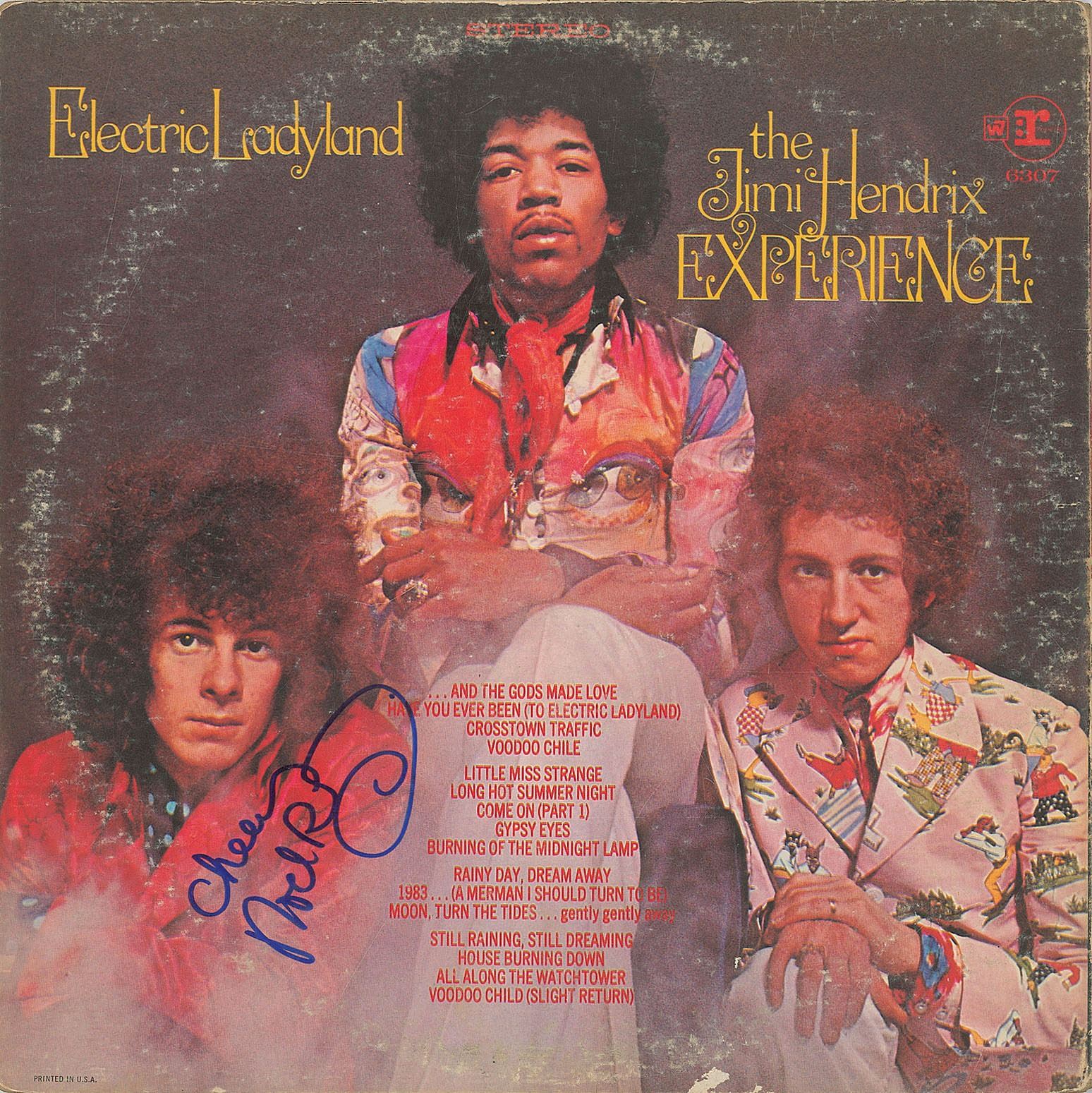 Electric Ladyland album signed on the back cover in blue felt tip, "Cheers, Noel Redding." In very good to fine condition, with surface wear and slight paper loss, and splits to top and bottom edges. The record is not included.