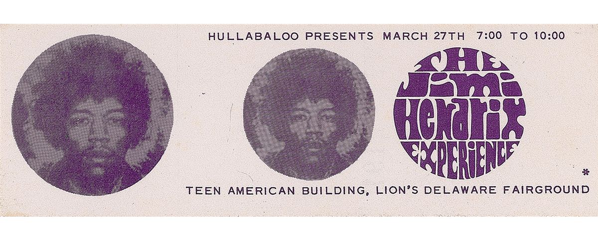 Original unused ticket from Hendrix’s March 27, 1968, concert at the Teen American Building at the Lions Delaware Fairground in Muncie, Indiana. Ticket measures 4.75 x 1.5, and features two images of Hendrix and one of the logo for the Experience. In fine condition.The concert was well-attended by fans both near and far, including Chicago and Indianapolis, with the band arriving quite tired as they had driven down from Cleveland, which they believed to be closer, and both of the band’s cars getting pulled over by police for speeding.