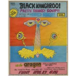 Jimi Hendrix - Music Memorabilia Posters (Seadog Productions, 1973). Chicago's Aragon Ballroom presents Black Kangaroo! Pretty Things! Soup! And the first showing of the film: "Jimi Hendrix At Berkley!" Some minor creasing and waviness, and a 1/2" tear on this scarce poster. Art by Michael Krueger. ***** Important notice: Heritage usually auctions material at the rate of 200-250 lots per hour. On some occasions eBay Live bid software or the Internet may not be able to keep up with the pace of the auction. We recommend placing a realistic absentee bid now as insurance to avoid disappointment. Occasionally the auctioneer may eliminate or reject an eBay Live bid, and the auctioneer may also reopen a lot after the close of the eBay live bidding (usually because we missed an audience bid), and may reject your bid even if it shows you as the winning bidder. By bidding via eBay Live, you agree that Heritage may award the lot to another bidder at its sole discretion under the circumstances described above or any other reasonable circumstances. Also please note that all Heritage lots purchased through eBay Live carry a 20% Buyer's Premium. Please make sure you read the Terms and Conditions before you bid.