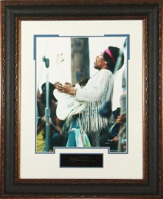 Jimi Hendrix was an American musician, singer, and songwriter. Although his mainstream career spanned only four years, he is widely regarded as one of the most influential electric guitarists in the history of popular music, and one of the most celebrated musicians of the 20th century. The Rock and Roll Hall of Fame describes him as "arguably the greatest instrumentalist in the history of rock music".This is an Unsigned 11x14 photo with museum Quality Leather Framing as shown. The perfect addition to complement any Home Theater Collection. Framed with a Replica Engraved Signature of Jimi Hendrix.