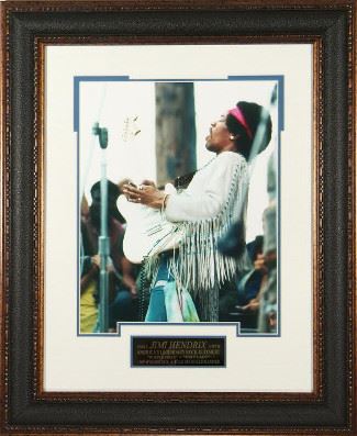 Jimi Hendrix was an American musician, singer, and songwriter. Although his mainstream career spanned only four years, he is widely regarded as one of the most influential electric guitarists in the history of popular music, and one of the most celebrated musicians of the 20th century. The Rock and Roll Hall of Fame describes him as "arguably the greatest instrumentalist in the history of rock music". This is an Unsigned 11x14 photo with museum Quality Leather Framing as shown. The perfect addition to complement any Home Theater Collection.