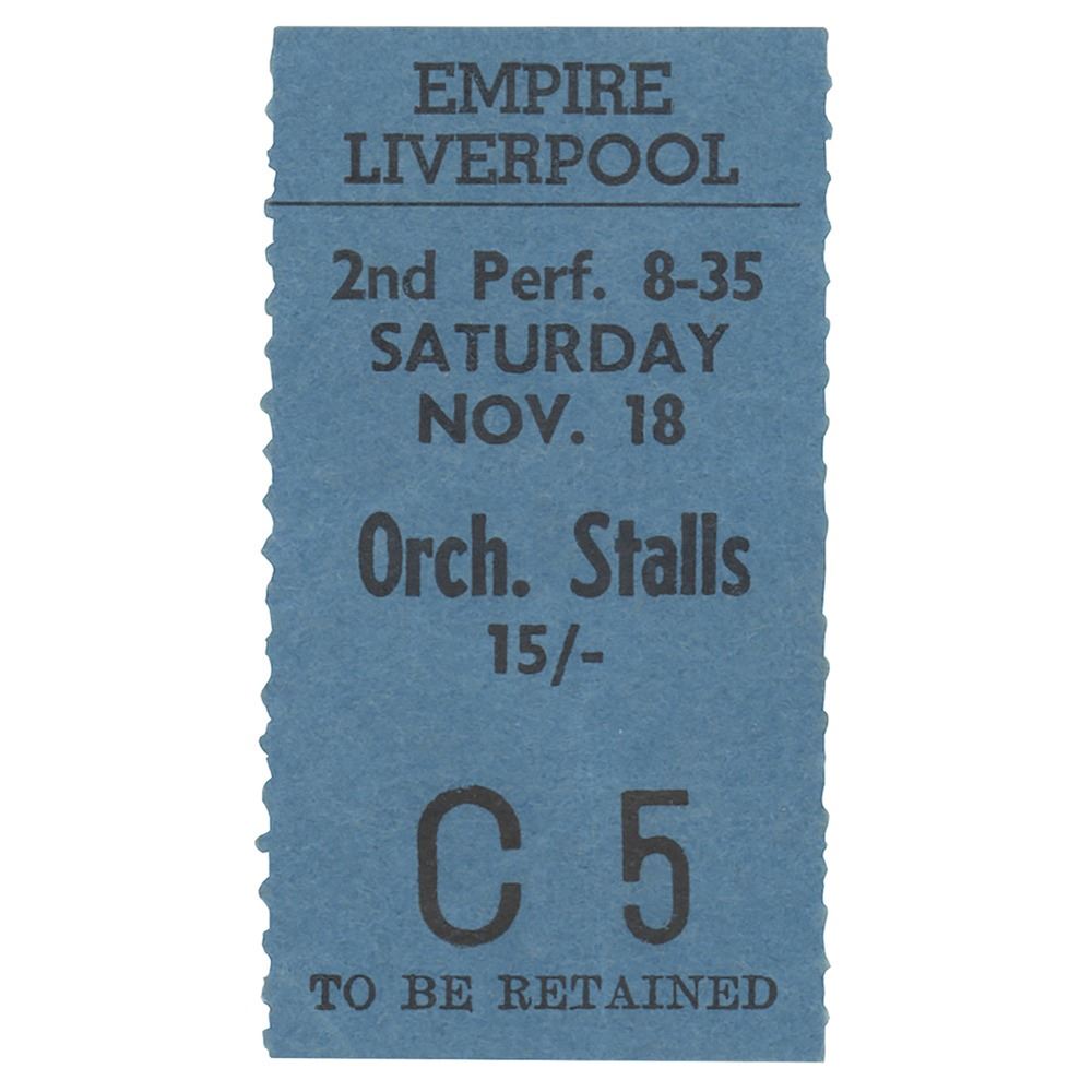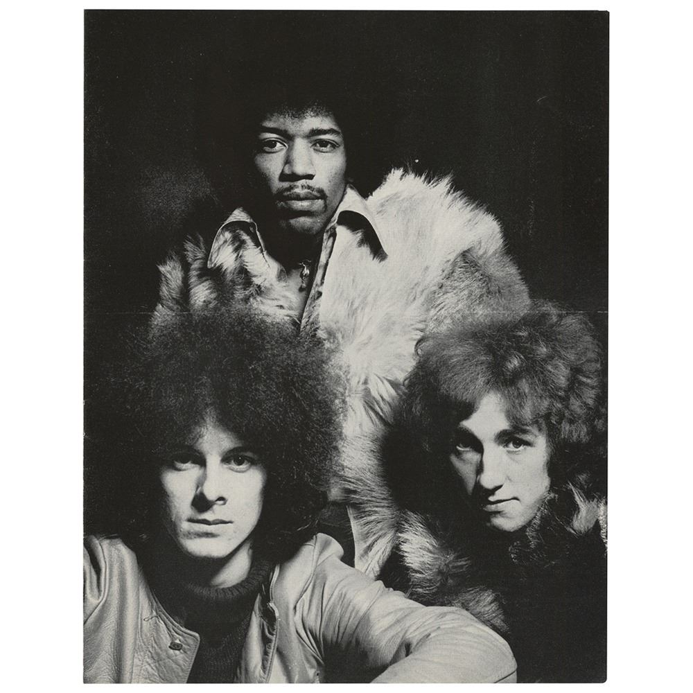 Rare original 1.25 x 2.5 ticket stub for a concert featuring the Jimi Hendrix Experience and Pink Floyd, held at the Empire Theatre in Liverpool, England, on November 18, 1967, as part of Hendrix's second European tour, issued for “Block E,” “Row F,” and “Seat 22.” Also included is an original vintage program for the Jimi Hendrix Experience's 1967 United Kingdom Fall Tour, published by the Hastings Printing Co., 12 pages, 10.25 x 8, with front cover featuring psychedelic artwork by Anthony Litri and Paul Martin, and the program including images and biographies of the tour's scheduled performers: Jimi Hendrix Experience, Pink Floyd, The Move, The Amen Corner, The Nice, The Eire Apparent, The Outer Limits, and Pete Drummond as compere. In very good to fine condition, with creasing and staining to the covers of the program; the ticket bears ink collector's notations on the reverse. Accompanied by a modern photo of the musicians from this now legendary tour.
