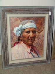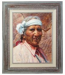 Exquisite, signed, original oil on canvas. A portrait of a Navajo man. Very good condition in custom double frame. Late 1900s. 20" x 16" (29" x 25")