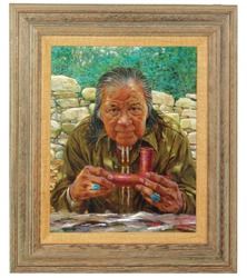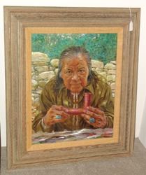 Exquisite, signed, original oil on canvas, a portrait of a Navajo man. Very good condition, in custom double frame. Late 1900s. 20" x 16" (29" x 25")