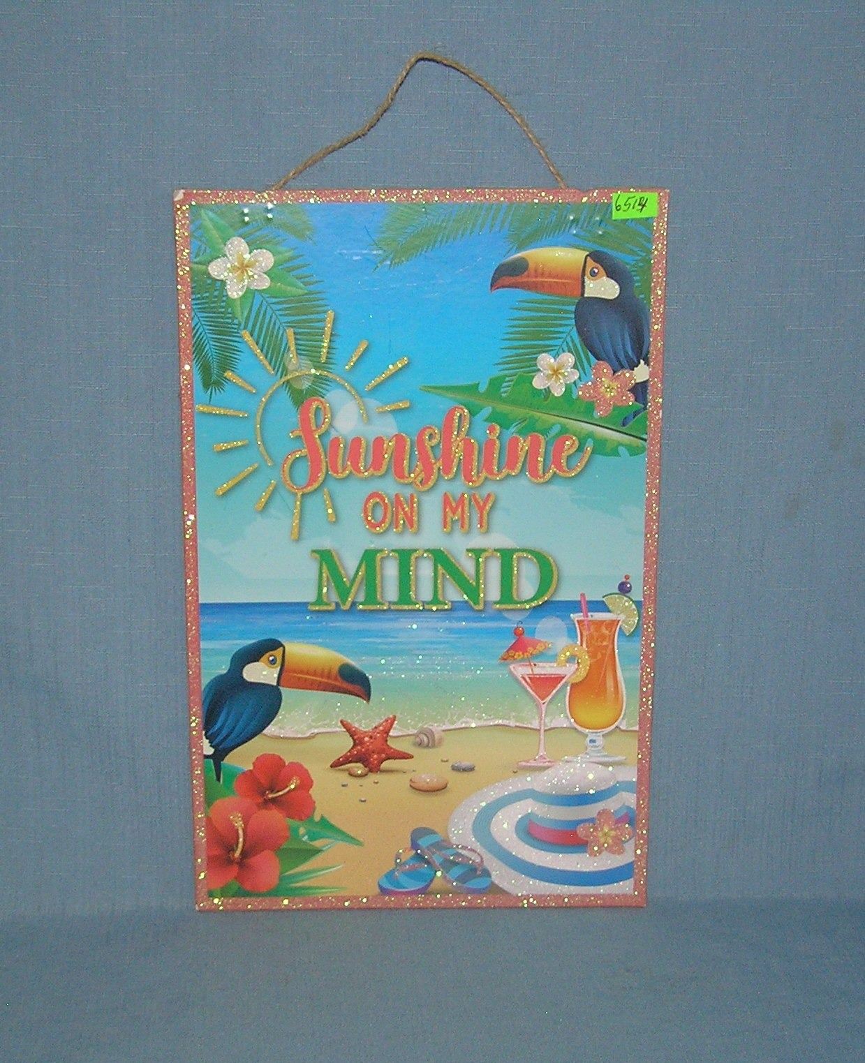 Jimmy Buffet style sunshine on my mind sign colorful with parrots est. value $25.00-$35.00