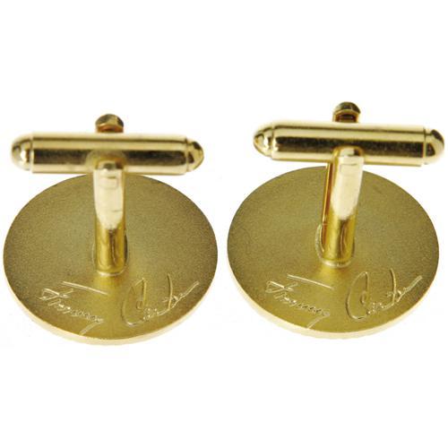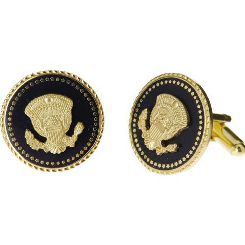 <B>Jimmy Carter VIP Cobalt Presentation Cufflinks.</B></I>These handsome cufflinks are gold plated with a fancy filigreed edge, the presidential seal in the center of each cufflink is die struck and surrounded by a dark blue canton. On the reverse of each cufflink Jimmy Carter's signature is engraved into the cufflink. They come in a blue leatherette jewelers case and in original gift box with presidential seal in the top. Do not miss this chance to own them!