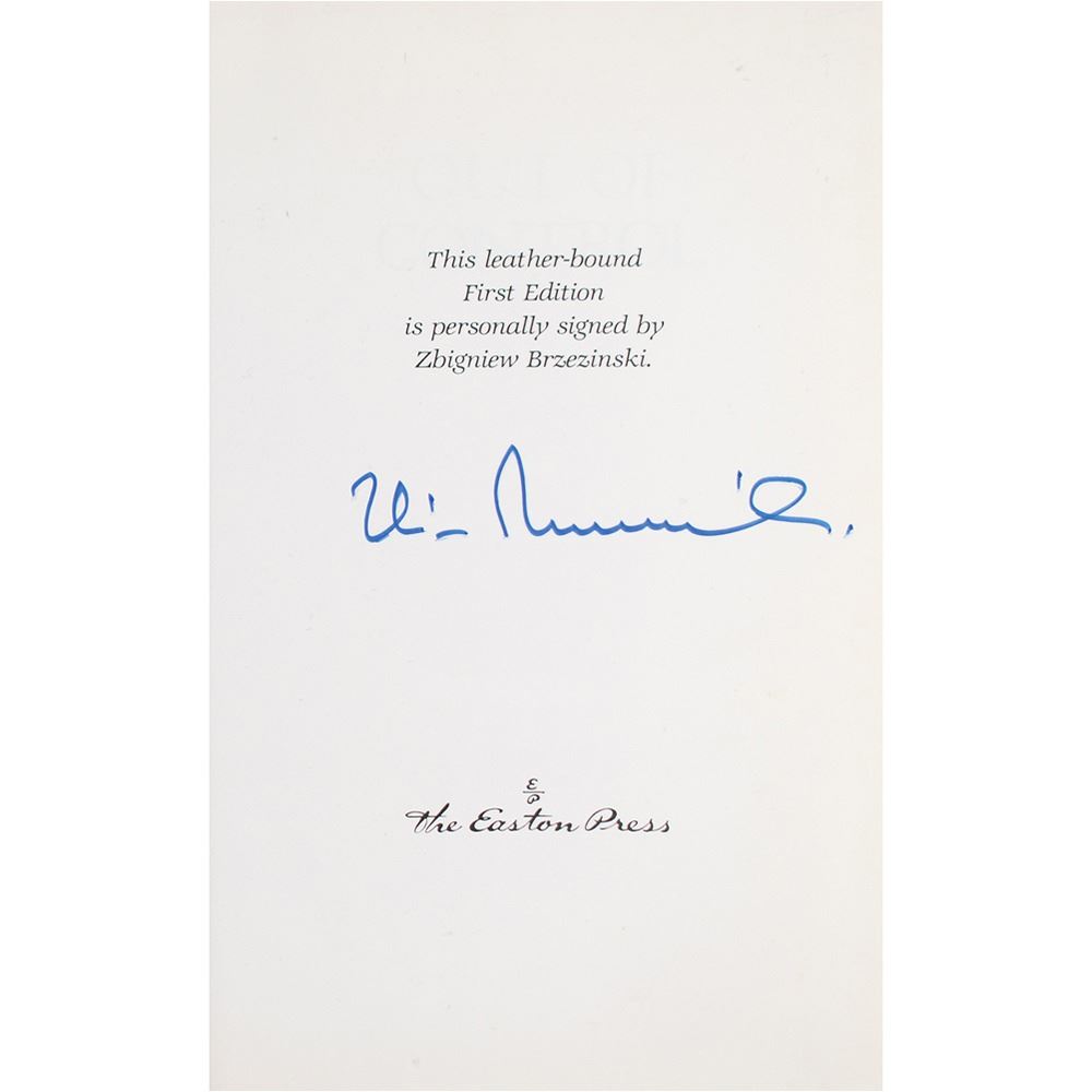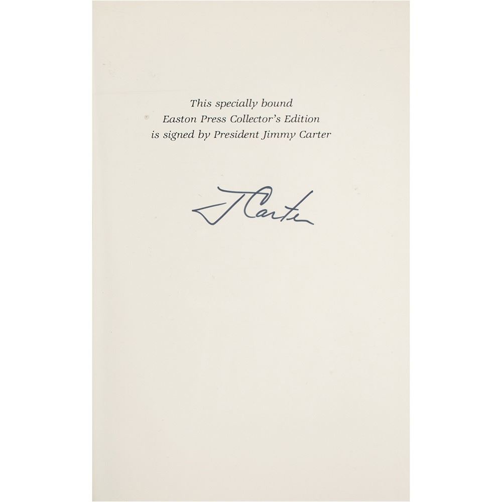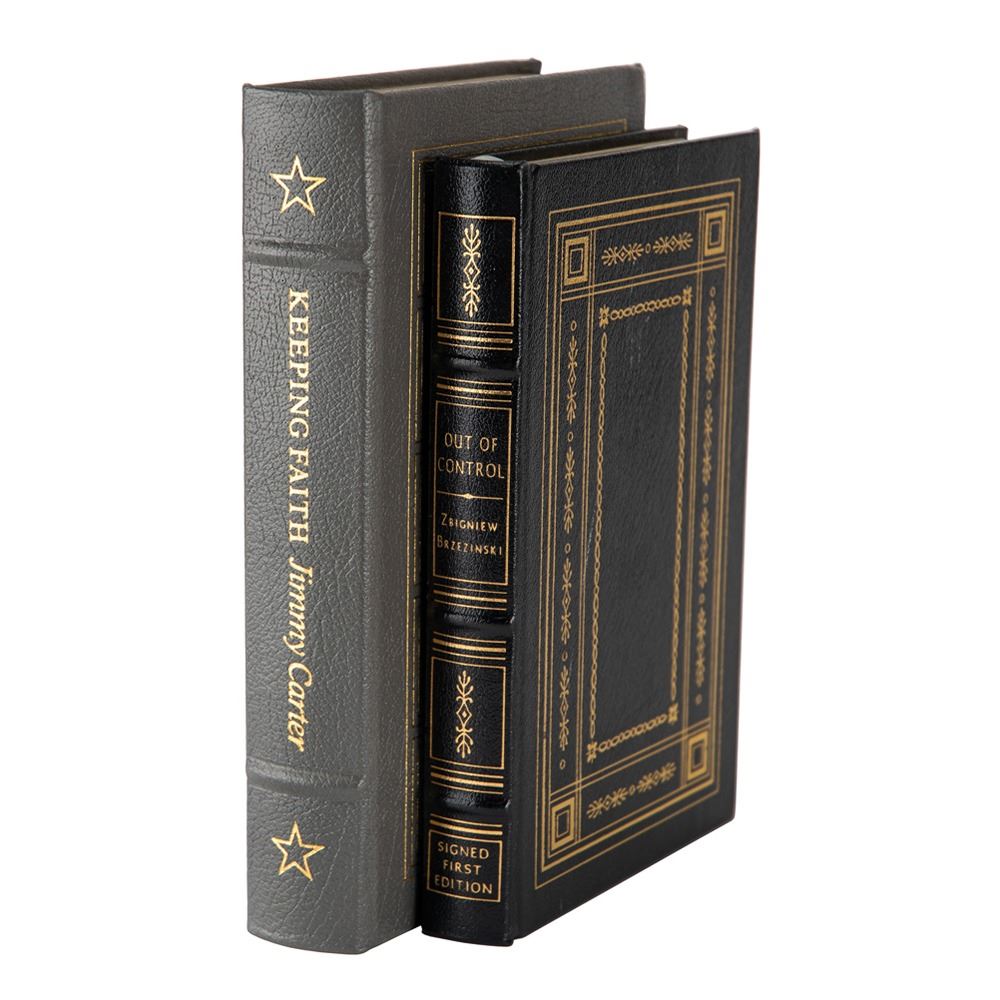 Two leatherbound Easton Press collector's edition books: Keeping Faith, signed on the colophon in black felt tip by Jimmy Carter; and Out of Control, signed on the colophon in blue felt tip by Carter's National Security Advisor, Zbigniew Brzezinski. In overall very fine condition.