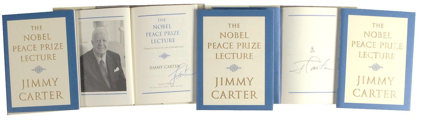 Five hardcover books, The Nobel Peace Prize Lecture, each signed on an opening page in blue or black ink, “J. Carter.” In overall fine condition.