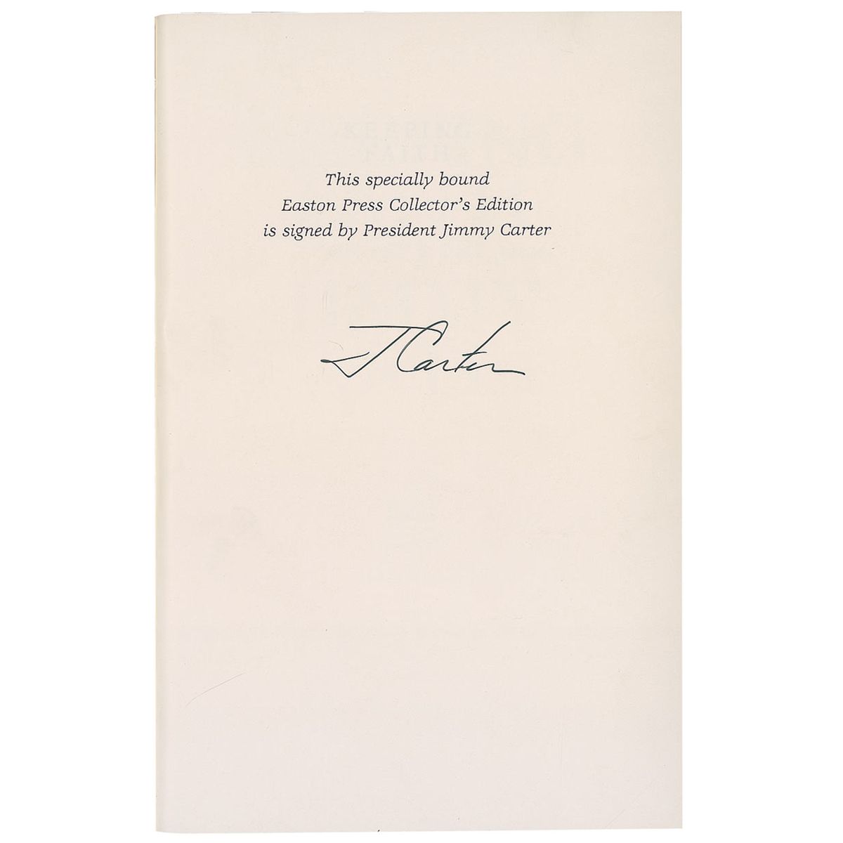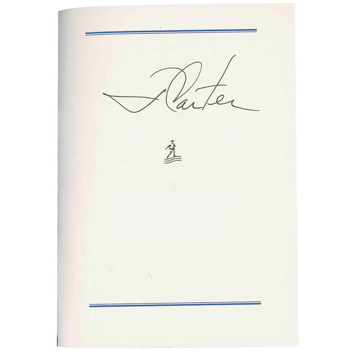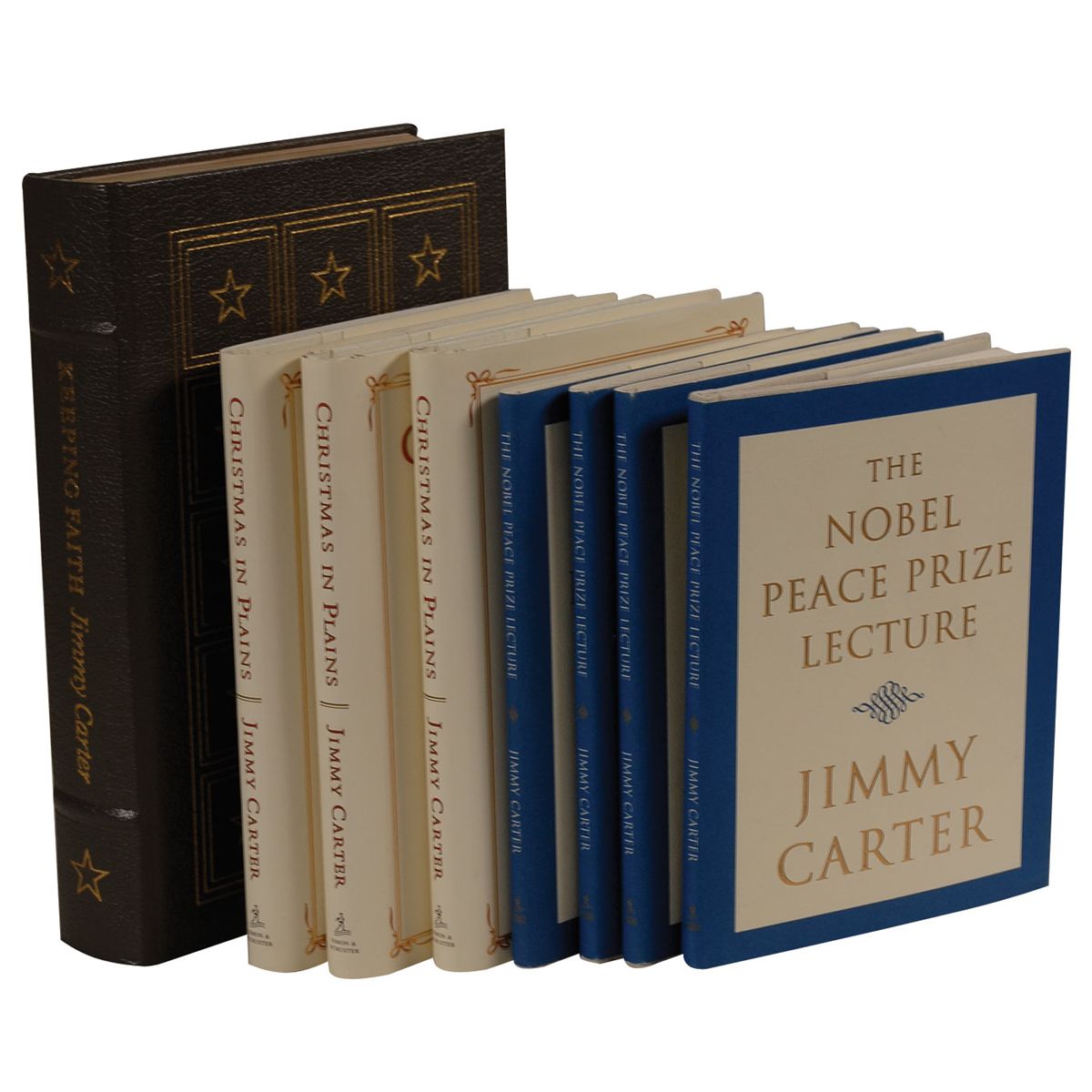 Eight hardcover books: three copies of Christmas in Plains; four copies of The Nobel Peace Prize Lecture; and a limited edition copy of Keeping Faith, each signed on an opening page in ink, “J. Carter.” In fine condition, with promotional labels affixed to fronts of Christmas books.