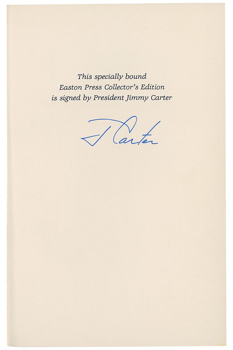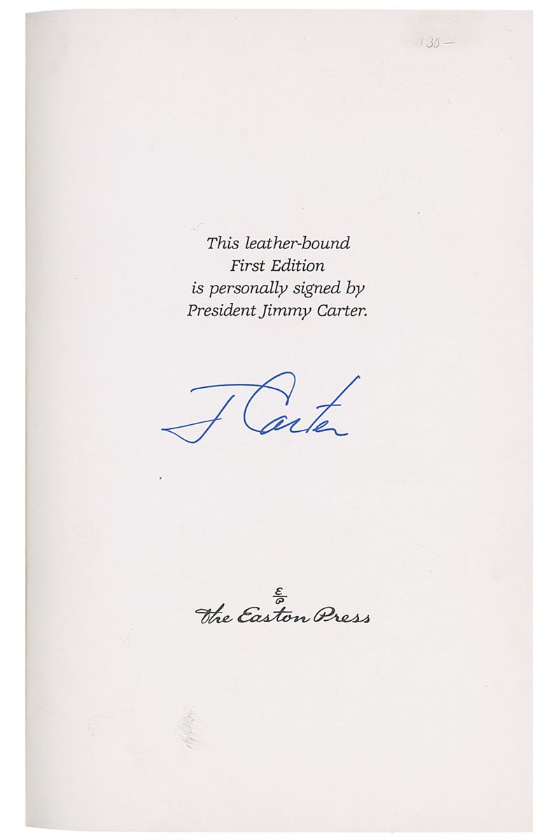 Two leatherbound Easton Press editions of Turning Point and Keeping Faith, each signed the colophon in blue felt tip, “J. Carter.” In overall fine condition, with an ownership bookplate affixed inside the front cover of one book.