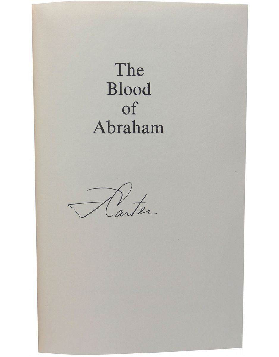 Signed book: The Blood of Abraham. First edition, first printing. Boston: Houghton Mifflin, 1985. Leatherbound hardcover with slipcase, 6.25 x 9.25, 257 pages. Signed on the half-title page in black ink, “J. Carter.” In very fine condition.