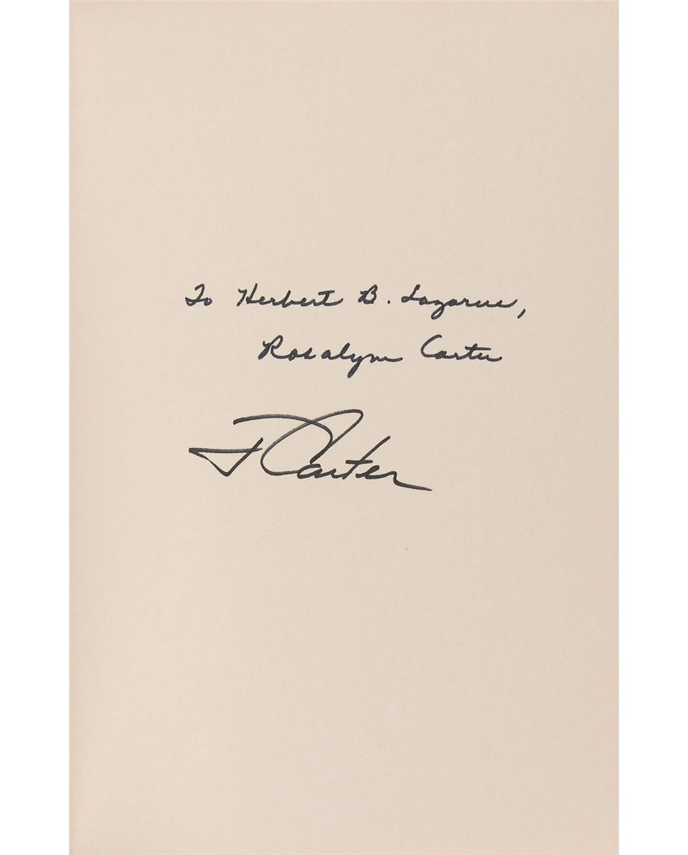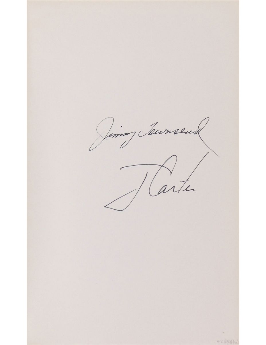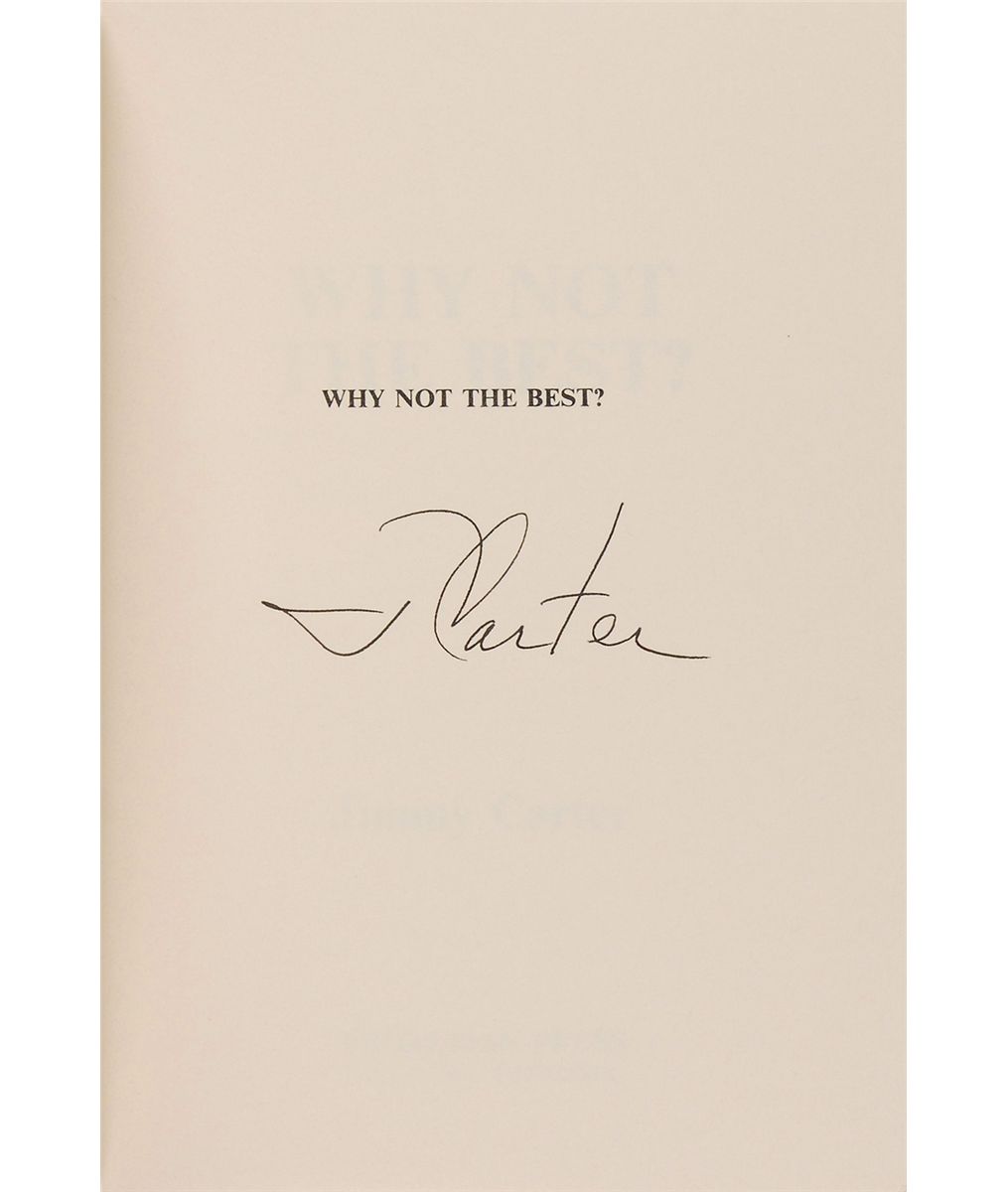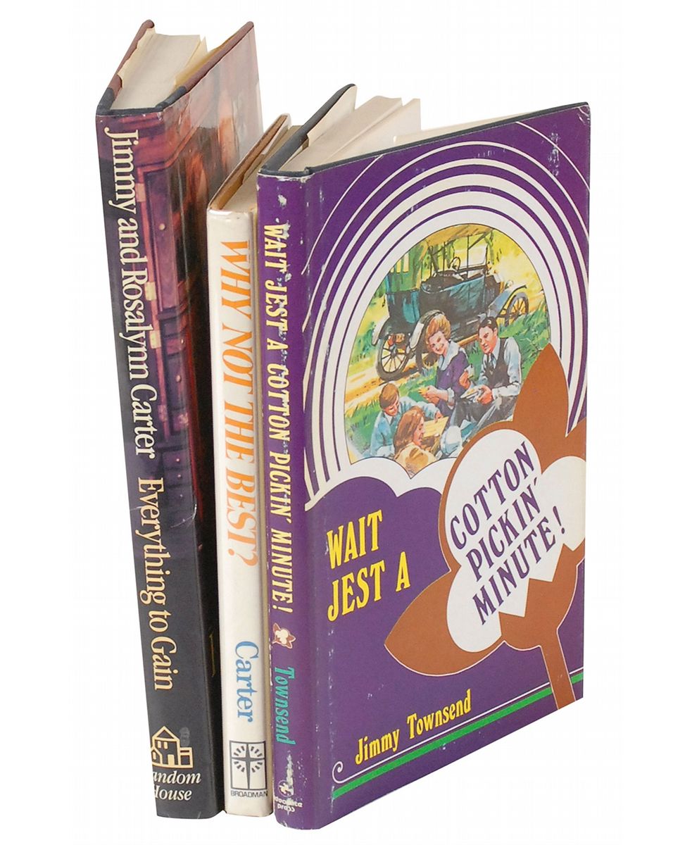 Three hardcover books, each signed on an opening page by Carter. Titles are: Why Not the Best; Everything to Gain (also signed and inscribed by Rosalynn Carter); and Wait Jest a Cotton Pickin’ Minute! (also signed by author Jimmy Townsend). In fine condition, with scattered wear to dust jackets.