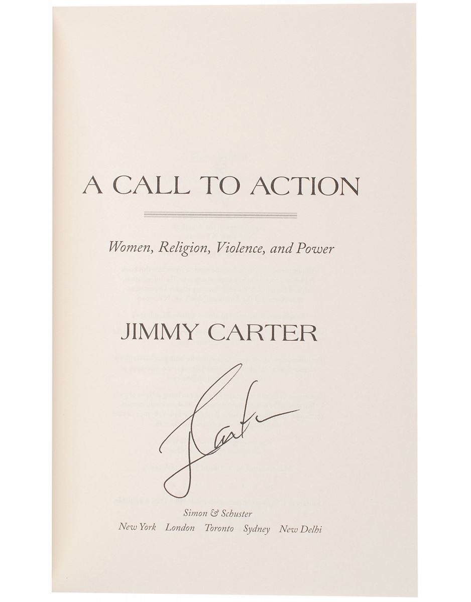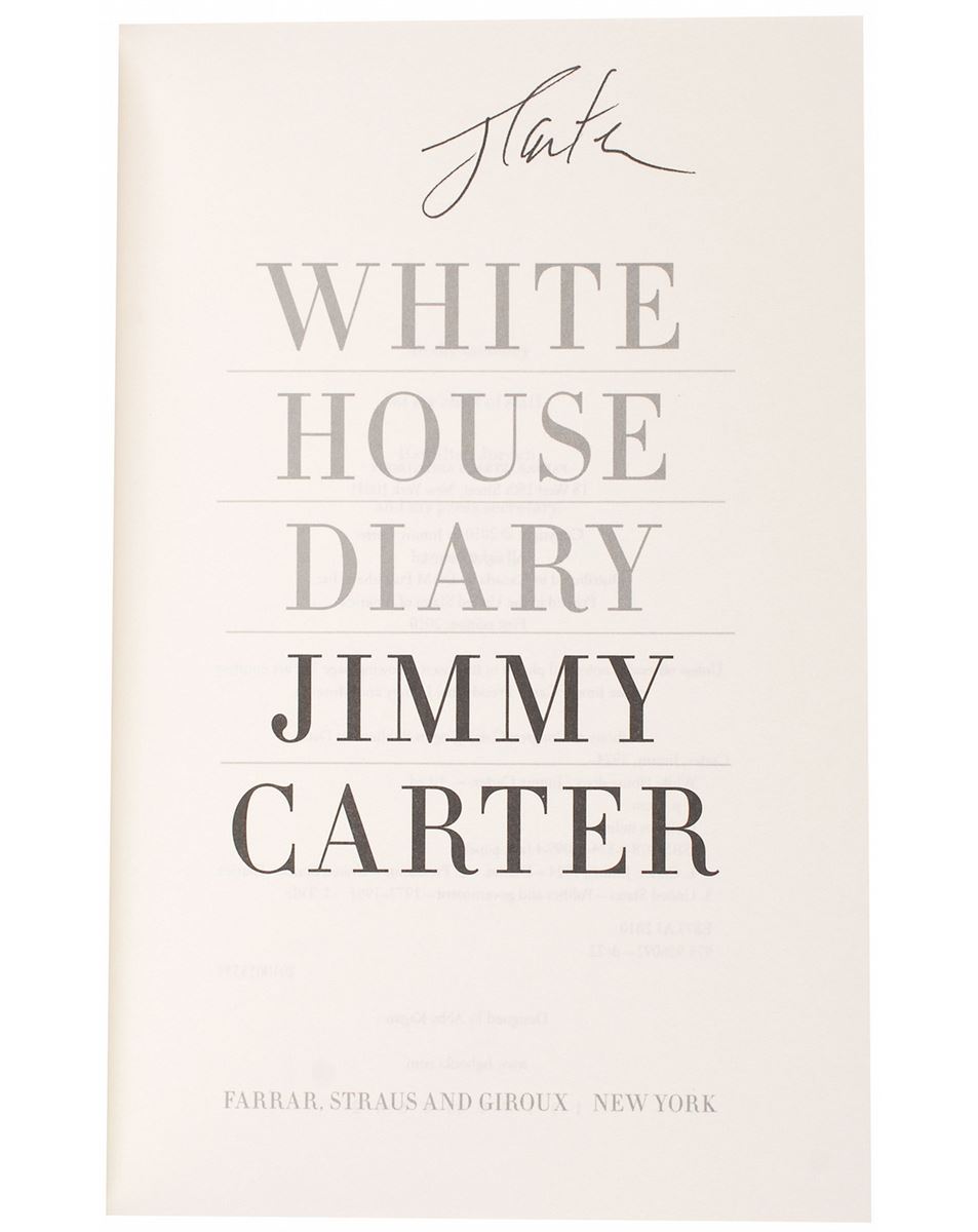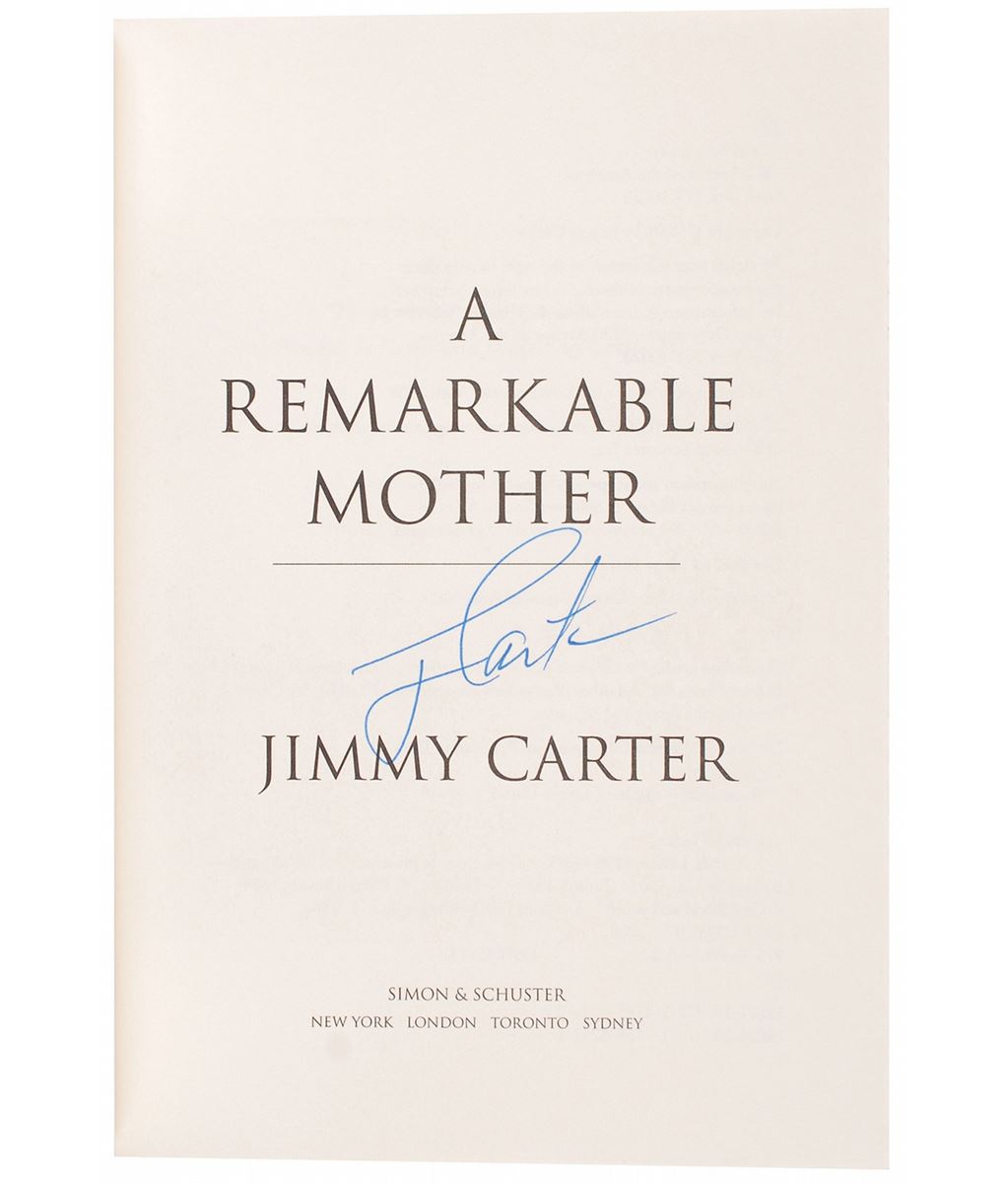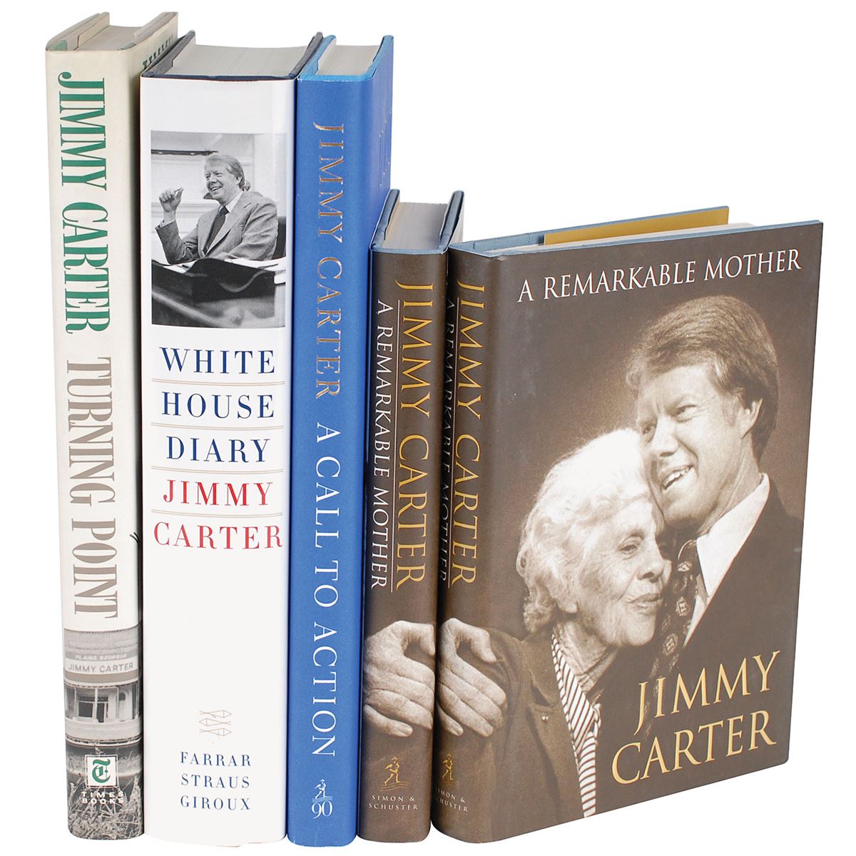Five hardcover books, each signed “J. Carter” on an opening page in ink. Titles include: White House Diary, A Call to Action, Turning Point, and two copies of A Remarkable Mother. In overall fine condition, with toning and rubbing to dust jacket of Turning Point.