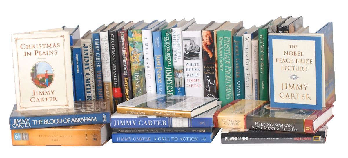 Complete list of titles: Power Lines; Why Not The Best; A Government as Good as Its People; Keeping Faith; Negotiation: An Alternative to Hostility; Blood of Abraham; An Outdoor Journal; Everything to Gain (signed by both); Turning Point; Talking Peace; Always a Reckoning; Little Baby Snooge Fleejer; Living Faith; Sources of Strength; Virtues of Aging; An Hour Before Daylight; Christmas in Plains; The Nobel Peace Prize Lecture; The Hornets Nest; Sharing Good Times; Our Endangered Values; Palestine: Peace Not Apartheid; A Remarkable Mother; Beyond the White House; We Can Have Peace in the Holy Land; White House Diary; NIV Lessons from Life Bible; Through the Year; A Call to Action; A Full Life; American Agenda; First Lady From Plains (signed by Rosalynn); Helping Someone Help Themselves (signed by Rosalynn); and Within Reach (signed by Rosalynn).