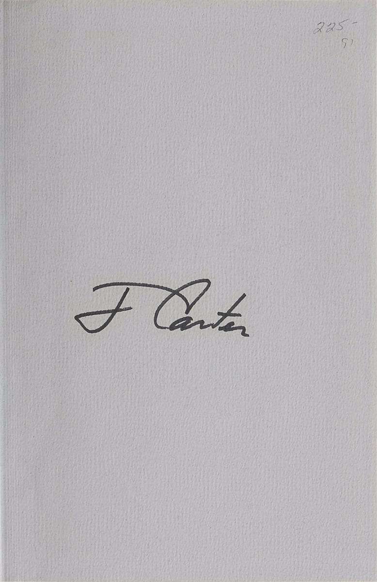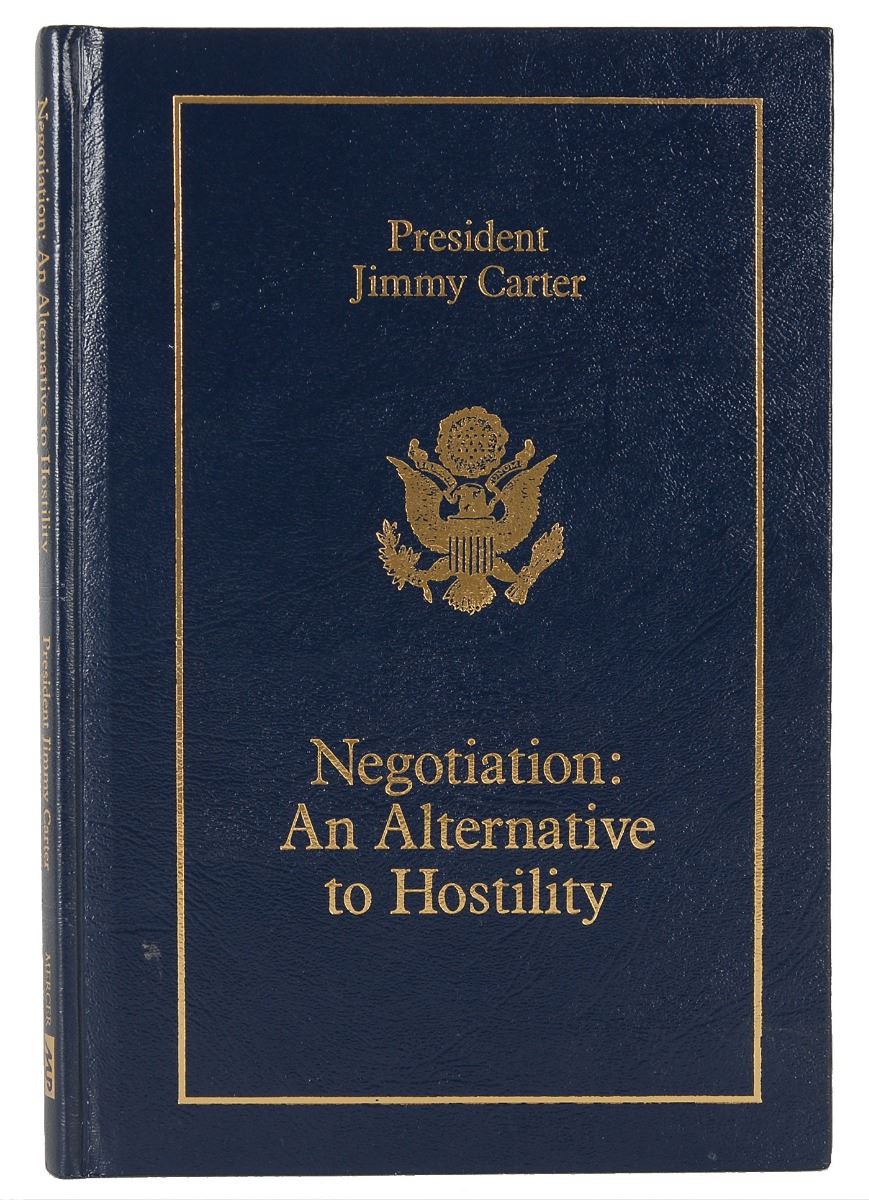 Signed book: Negotiation: An Alternative to Hostility. Macon, Georgia: Mercer University Press, 1984. Hardcover, 6.25 x 9.25, 57 pages. Signed on the first free end page in black felt tip, “J. Carter.” In fine condition. An uncommon signed title.