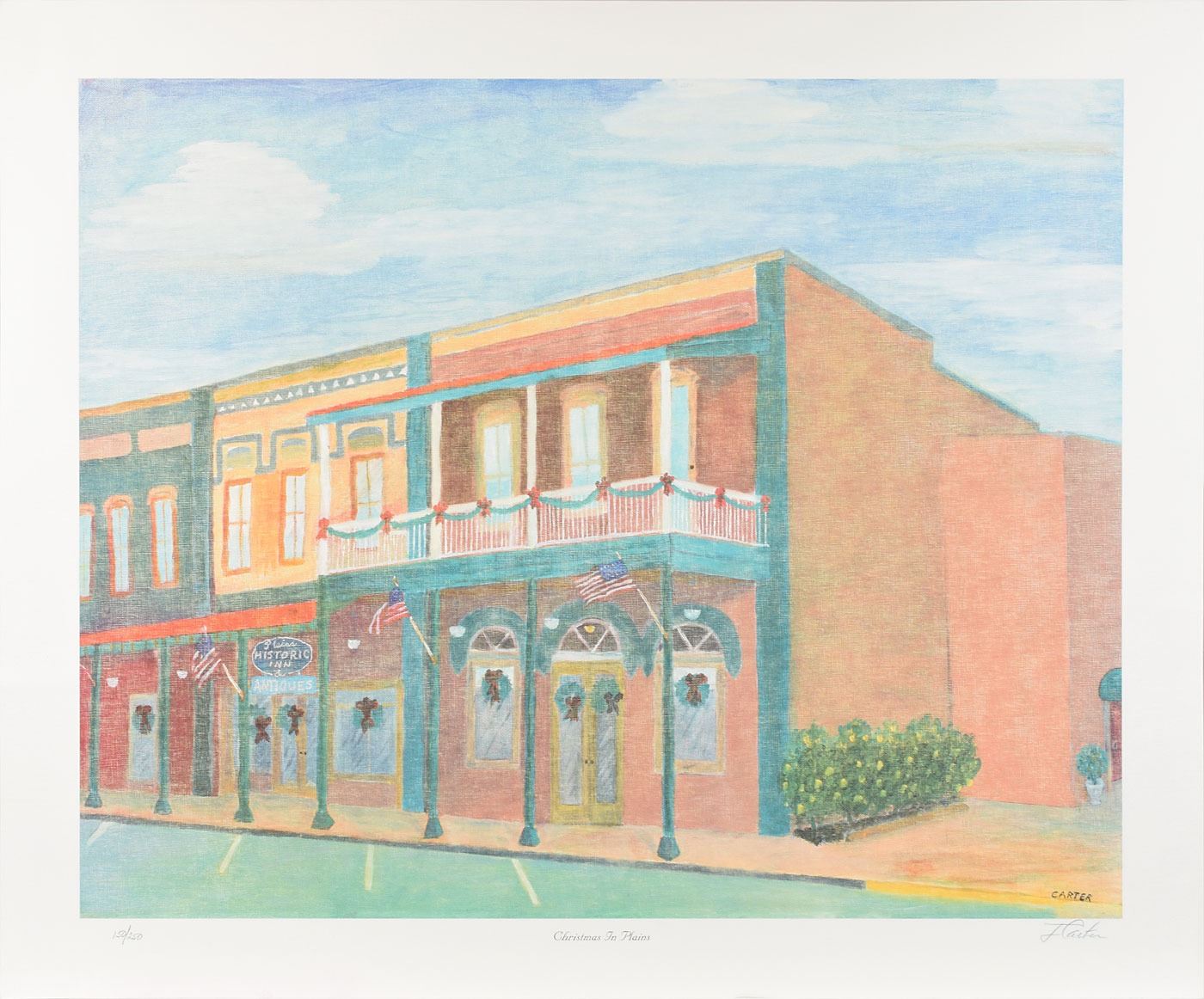 Color limited edition 30 x 25 print entitled 'Christmas in Plains,' numbered 150/250, signed in the lower border in blue pencil, "J. Carter." In fine condition, with a few light creases.