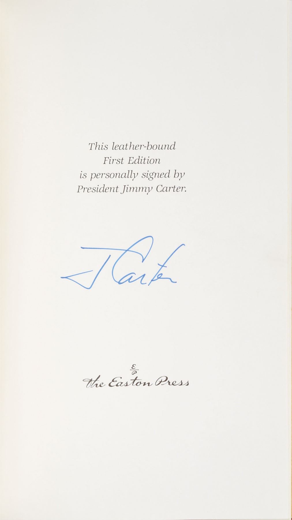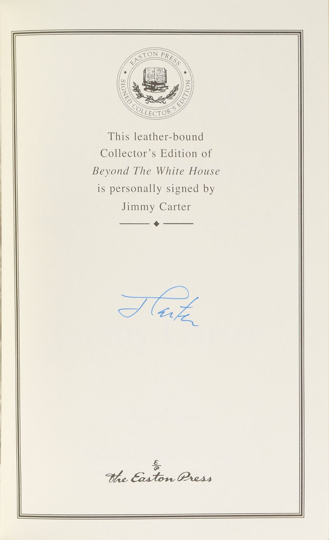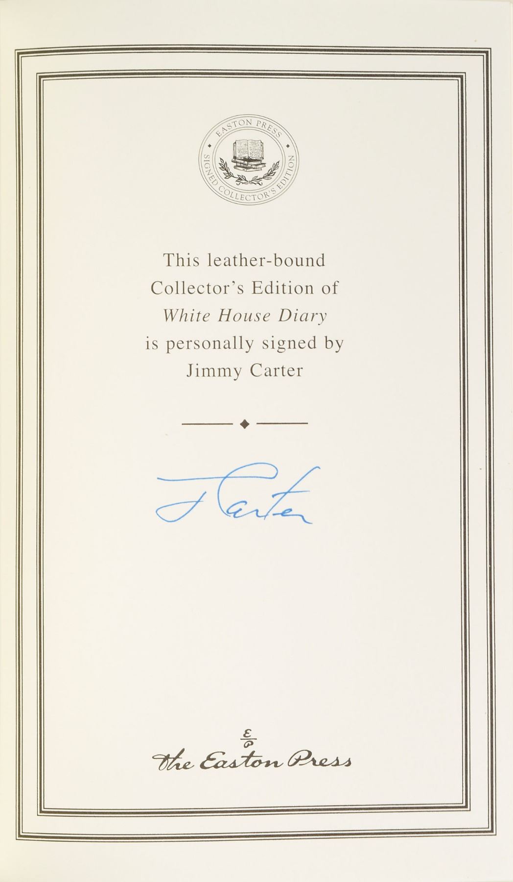 Three collector's edition books from the Easton Press: White House Diary, Turning Point, and Beyond the White House. Each book is leather-bound hardcover and signed on the colophon in blue ink, "J. Carter." In overall very fine condition.