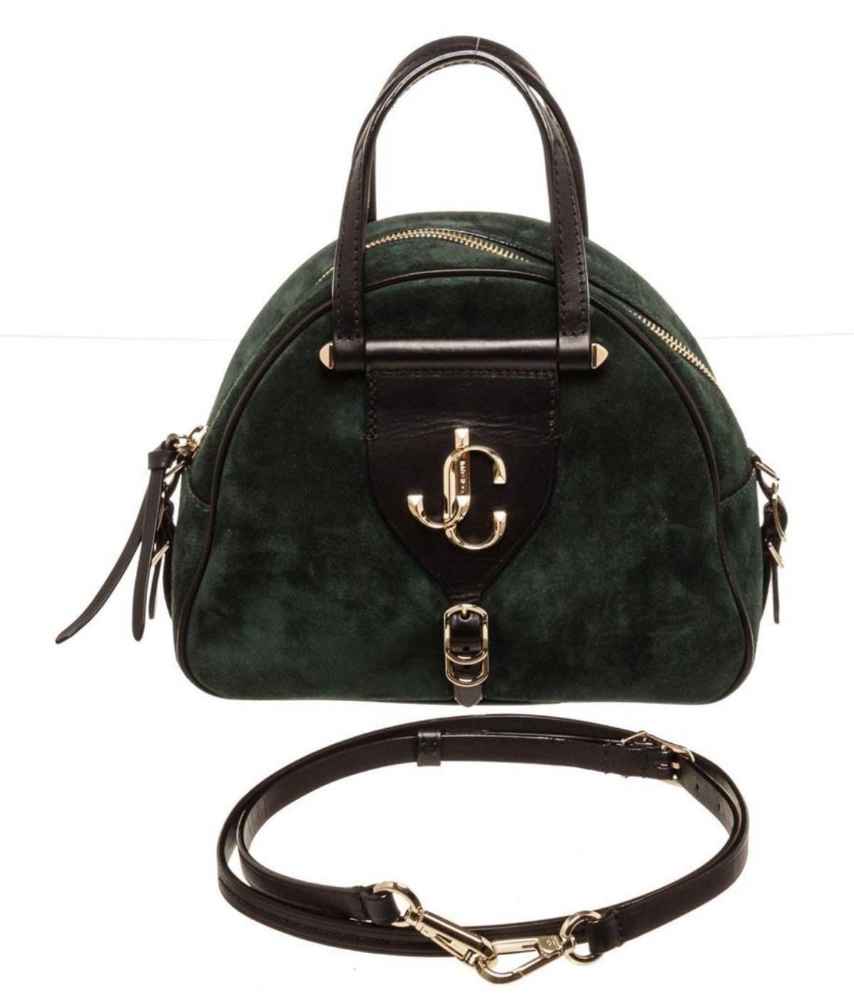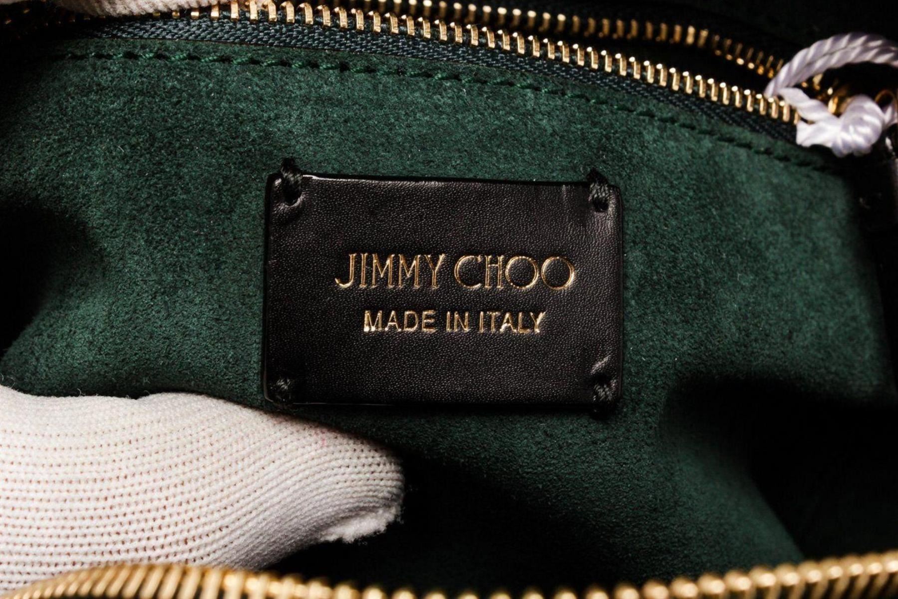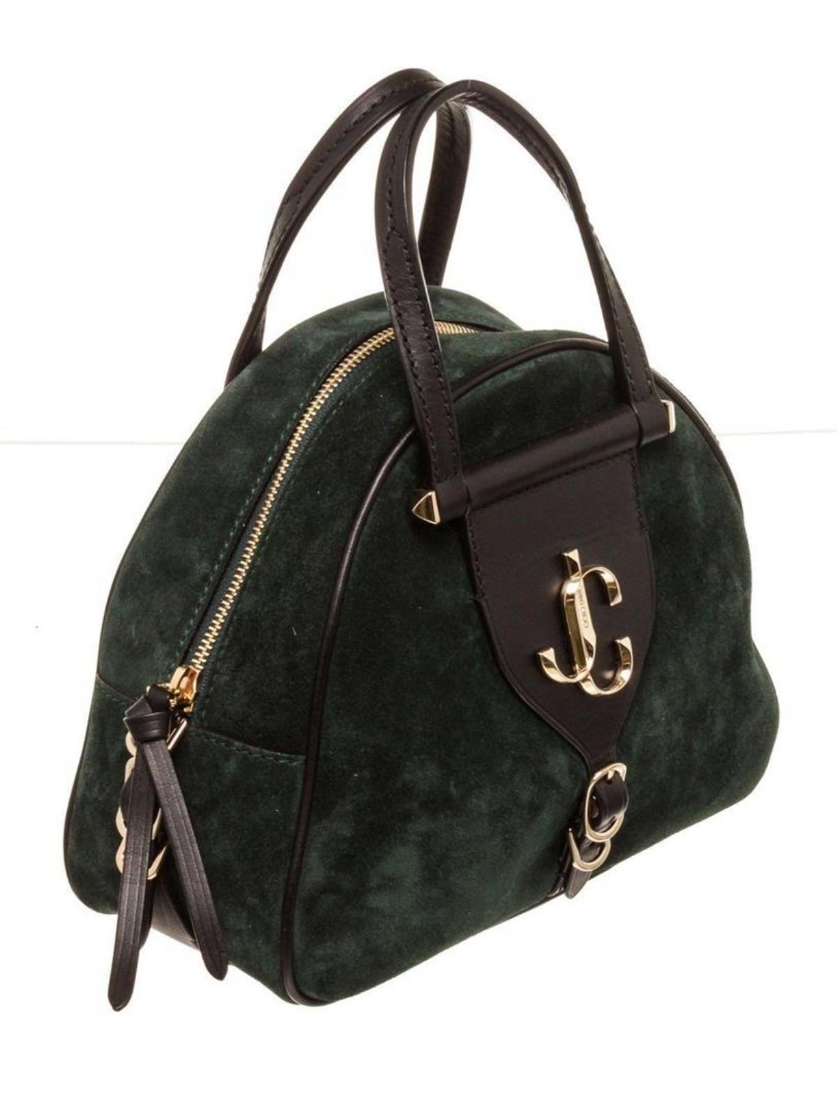 Jimmy Choo Green Varenne 2 Bowling Handbag with leather, gold ton hardware, Dual top handles and zip closure.
