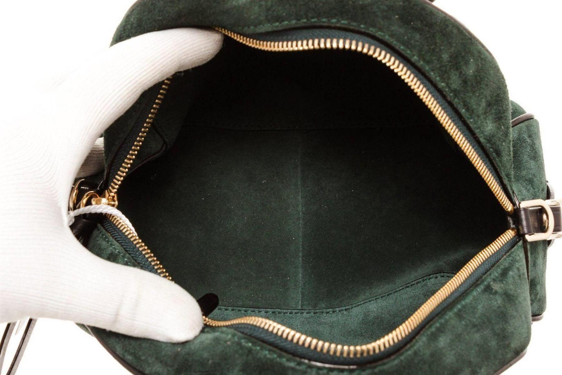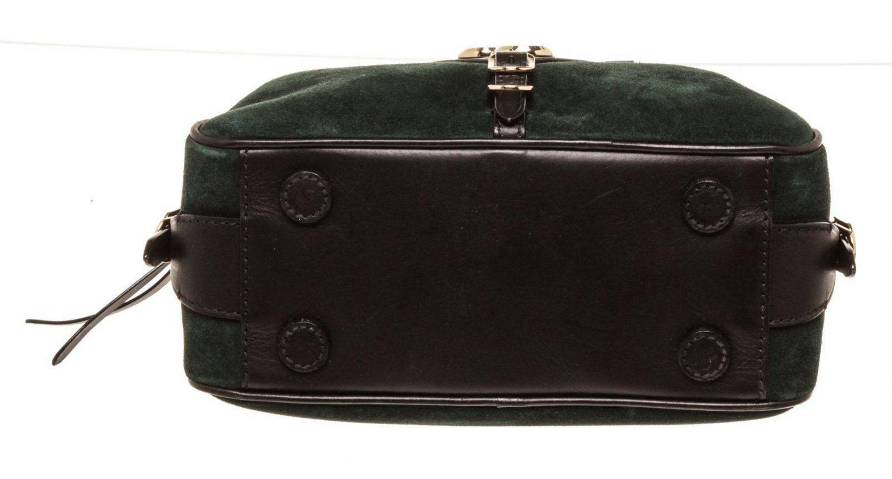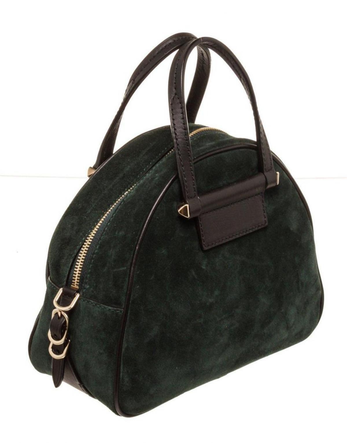 Jimmy Choo Green Varenne 2 Bowling Handbag with leather, gold ton hardware, Dual top handles and zip closure.