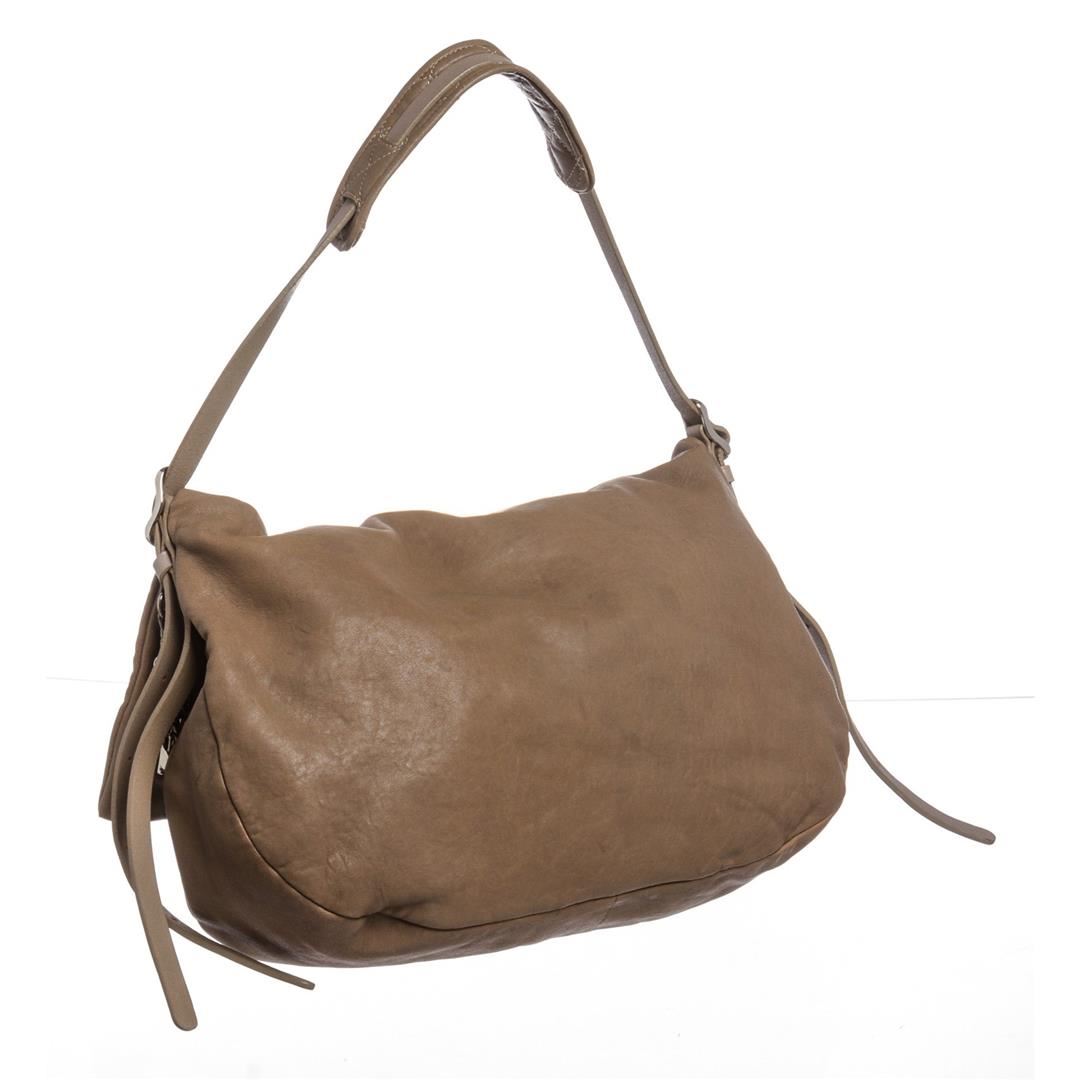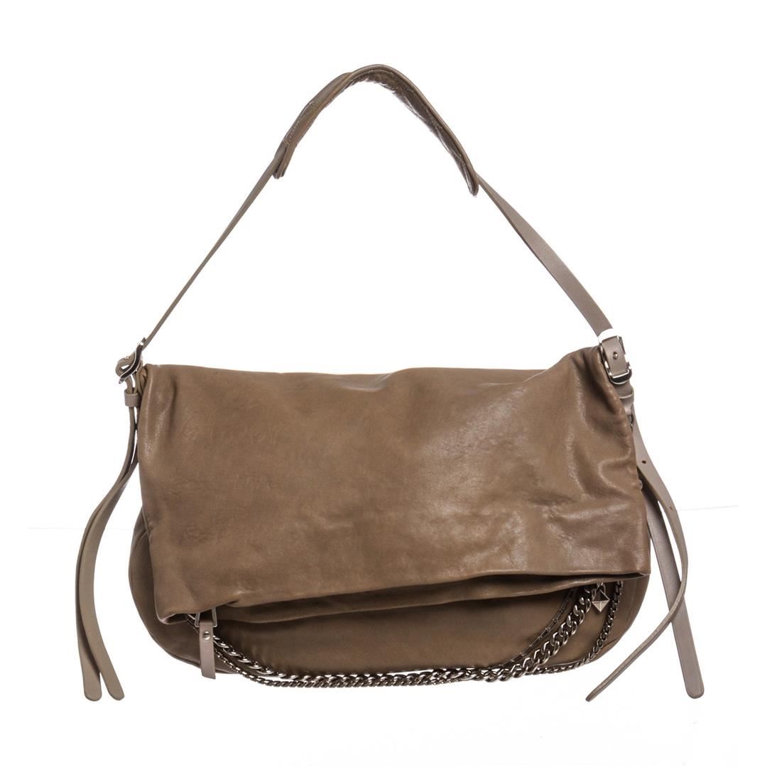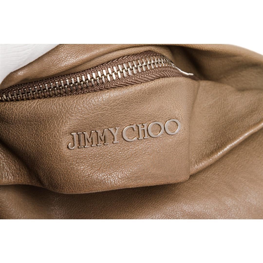 Jimmy Choo Boho hobo with silver-tone hardware, taupe leather flat shoulder strap with quilted shoulder guard, quilted panel at exterior base, logo embellishment at front face, tan suede interior lining, dual pockets at interior walls; one with zip closure and zip closure at top featuring chain-link accents. Dimensions = 15"x4.5"x10" Handle Drop:8"/38.10cmx11.43cmx25.4cm Handle Drop:20.32cm. Item is pre-owned.