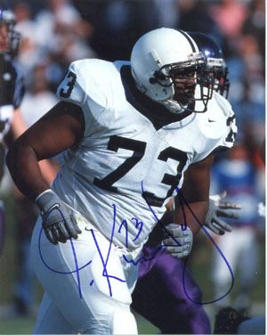 A four-year starter at Penn State University, Jimmy Kennedy was named the 2002 Big Ten Defensive Lineman-of-the-Year and was a two-time first-team All-Big Ten selection. A semi-finalist for the Lombardi Award, Kennedy finished his career with 213 tackles, 14 sacks, and 39 tackles-for-loss. As a senior in 2002 Kennedy was named a First-team All-America by The Sporting News, and Walter Camp Football Foundation, The NFL Draft Report, and third-team honors from the Associated Press. Jimmy Kennedy has hand autographed this Penn State 8x10 Color Photo. Rotman Auction Hologram and Certificate of Authenticity.