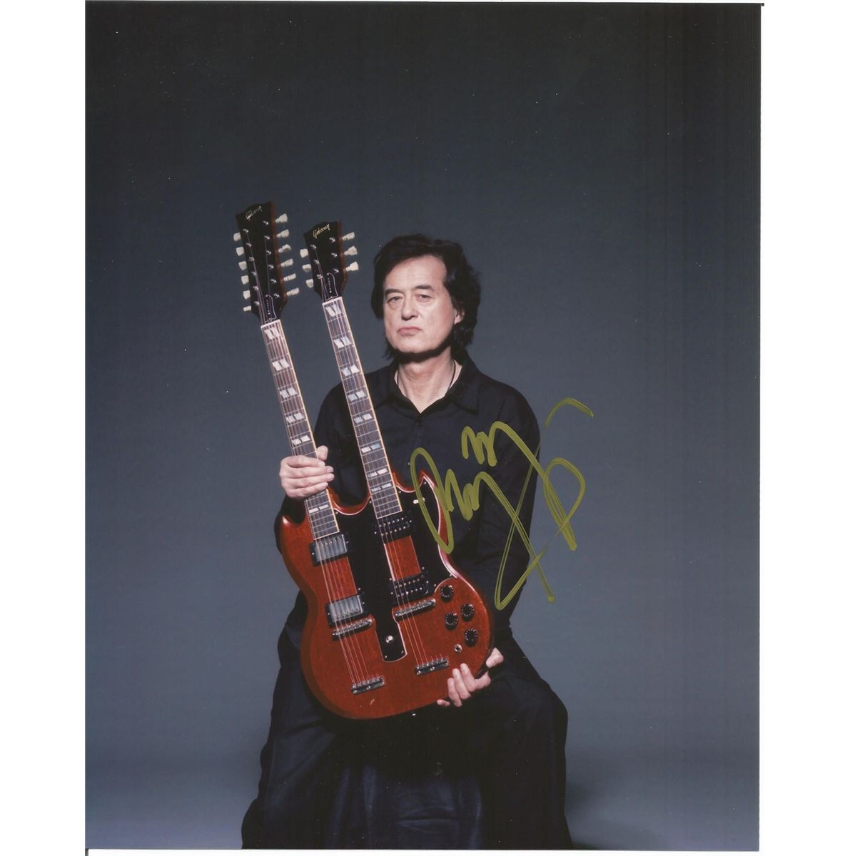 Color 8x10 holding his famed double neck guitar