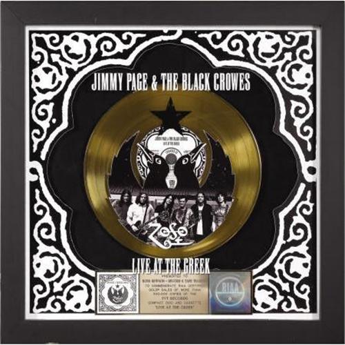 <B>Jimmy Page and the Black Crowes "Live at the Greek" RIAA Gold Album Award.</B></I> Presented to Record and Tape Traders to commemorate the sale of more than 500,000 copies of the 1999 double-live album . Framed to an overall size of 22.75" x 22.75" and in Excellent condition.<BR><BR><b>Shipping:</b> Flat Material, Large (<a target="_blank" href="http://www.heritageauctions.com/common/shipping.php">view shipping information</a>)