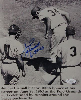 Jimmy Piersall became a professional baseball player at age 18, signing a contract with the Boston Red Sox in 1948. In a reserve role with the New York Mets, Piersall played briefly under manager Casey Stengel. In the fifth inning of the June 23 game against the Philadelphia Phillies, Piersall hit the 100th home run of his career, off Phillies pitcher Dallas Green. He ran around the bases in the correct order, but facing backwards as he made the circuit. Jimmy Piersall has hand signed this New York Mets Black & White 8x10 Photo Running Backwards with 6-22-63 inscription. James Spence Hologram and Certificate of Authenticity.