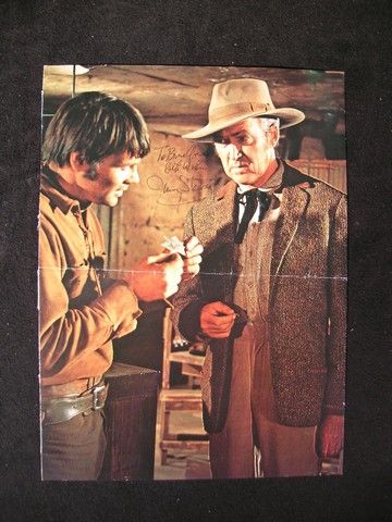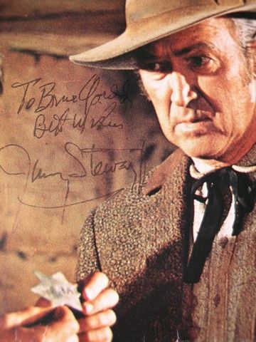 From one of the most beloved actors of all time. This is a Jimmy Stewart autographed color photo clipping from one of his later films, possibly a Western feature. The signature is signed in black ink. (measures approx. 8 1/2"x 11")