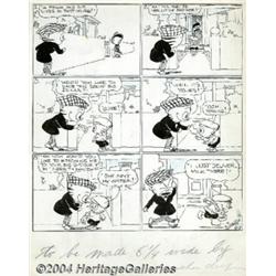 Jimmy Swinnerton - Original Comic Strip Art for Mr. Jack Sunday dated 3-7-19(?) and Little Jimmy Daily dated 2-11-20 (King Features Syndicate, circa 1920). Offered here are two beautiful examples of the work of cartoonist Jimmy Swinnerton. The Mr. Jack daily is a classic, as our hero once again tries to make time with a beautiful lady, and ends up the worse for it. With an image area of approximately 9.5" x 10", and in excellent condition, this is a fantastic example of Swinnerton's early work, and is signed by the artist in the last panel. It should be noted that the attributed year of this piece, 1919, is somewhat suspect, and represents our best guess at this time. However, this piece is almost certainly from an earlier period in this strip's history. The Little Jimmy daily that is also offered in this lot represents Swinnerton's longest running feature (it debuted in 1904, and ran until Swinnerton injured his hand and had to retire in 1958, at the age of 82), and was the artist's personal favorite of all his creations. This particular example perfectly captures the focus of the strip, a young boy who, with the best of intentions, is always getting into trouble. In excellent condition, this piece displays an approximate image area of 9.5" x 9.25" and is signed by Swinnerton in the last panel. This is an excellent opportunity to obtain two classic strips by one of the medium's greatest creators. Important notice: Heritage usually auctions material at the rate of 200-250 lots per hour. On some occasions eBay Live bid software or the Internet may not be able to keep up with the pace of the auction. We recommend placing a realistic absentee bid now as insurance to avoid disappointment. Occasionally the auctioneer may eliminate or reject an eBay Live bid, and the auctioneer may also reopen a lot after the close of the eBay live bidding (usually because we missed an audience bid), and may reject your bid even if it shows you as the winning bidder. By bidding via eBay Live, you agree that Heritage may award the lot to another bidder at its sole discretion under the circumstances described above or any other reasonable circumstances. Since eBay bids are not shown to us until we open the lot on the floor, we treat those bids just like floor bids. In most cases the floor responds before the eBay bid is presented to us, due to Internet lag time, so for consistency we have made it a policy that floor bids are always considered first over tie eBay live bids. Also please note that all Heritage lots purchased through eBay Live carry a 20% Buyer's Premium. Please make sure you read the Terms and Conditions before you bid.