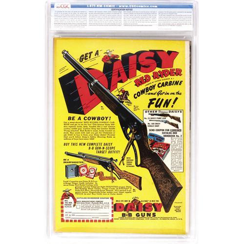 <B>Jimmy Wakely #4 Davis Crippen ("D" Copy) pedigree (DC, 1950) CGC VF/NM 9.0 Off-white pages.</B></I> Frank Frazetta, Alex Toth, and Harvey Kurtzman, that's greatness times three, and all three gents contributed to this issue! For Kurtzman, it was a "Pot-Shot Pete" gag page, the artist's only contribution to this series. Overstreet 2006 VF/NM 9.0 value = $441; NM- 9.2 value = $600. CGC census 6/06: 1 in 9.0, 1 higher. <I>From the Crippen Collection.</B></I> <BR><BR><B>Important notice:</B> Heritage usually auctions material at the rate of 200-250 lots per hour. On some occasions eBay Live bid software or the Internet may not be able to keep up with the pace of the auction. We recommend placing a realistic absentee bid now as insurance to avoid disappointment. Occasionally the auctioneer may eliminate or reject an eBay Live bid, and the auctioneer may also reopen a lot after the close of the eBay live bidding (usually because we missed an audience bid), and may reject your bid even if it shows you as the winning bidder. By bidding via eBay Live, you agree that Heritage may award the lot to another bidder at its sole discretion under the circumstances described above or any other reasonable circumstances. Since eBay bids are not shown to us until we open the lot on the floor, we treat those bids just like floor bids. In most cases the floor responds before the eBay bid is presented to us, due to Internet lag time, so for consistency we have made it a policy that floor bids are always considered first over tie eBay live bids. Also please note that all Heritage lots purchased through eBay Live carry a 22.5% Buyer's Premium. Please make sure you read the Terms and Conditions before you bid. This lot is being auctioned in conjunction with a live floor auction by Heritage Auction Galleries. All final auction and invoice information will be supplied by Heritage Auction Galleries, and all other information should be considered preliminary. Lot:41001 <BR><BR><B>Winning Notification and Billing:</B> After the FINAL session in this auction is complete, Heritage will send e-mail and snail mail invoices. This process normally takes several days. All final auction and invoice information will be supplied by Heritage Auction Galleries, and all other information should be considered preliminary. <BR><BR>This auction will be conducted on a live auction floor and over the Internet through eBay Live. If you choose to place an absentee bid, please take a moment to <font color='#0000ff'><u><a href='http://pages.ebay.com/liveauctions/help/before/laabsentee.html'>learn how eBay Live absentee bidding works</a></u></font><font color='#000000'>