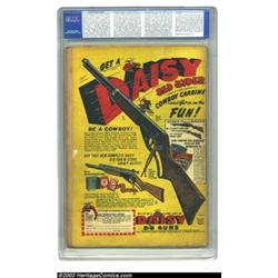 Jimmy Wakely #4 Kurtzman File Copy (DC, 1950) CGC FR 1.0 Light tan to off-white pages. This rather tattered copy of cowboy movie star Jimmy Wakely's comic book boasts some fine artwork among its pages. There are stories drawn by Frank Frazetta and Alex Toth. And to top it off, there's Harvey Kurtzman's "Pot-Shot Pete" gag strip. This is a book from Kurtzman's own personal collection. Overstreet 2003 GD 2.0 value = $49. Important notice: Heritage usually auctions material at the rate of 200-250 lots per hour. On some occasions eBay Live bid software or the Internet may not be able to keep up with the pace of the auction. We recommend placing a realistic absentee bid now as insurance to avoid disappointment. Occasionally the auctioneer may eliminate or reject an eBay Live bid, and the auctioneer may also reopen a lot after the close of the eBay live bidding (usually because we missed an audience bid), and may reject your bid even if it shows you as the winning bidder. By bidding via eBay Live, you agree that Heritage may award the lot to another bidder at its sole discretion under the circumstances described above or any other reasonable circumstances. Also please note that all Heritage lots purchased through eBay Live carry a 20% Buyer's Premium. Please make sure you read the Terms and Conditions before you bid.