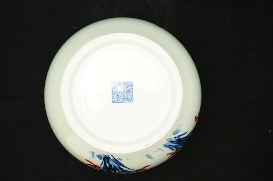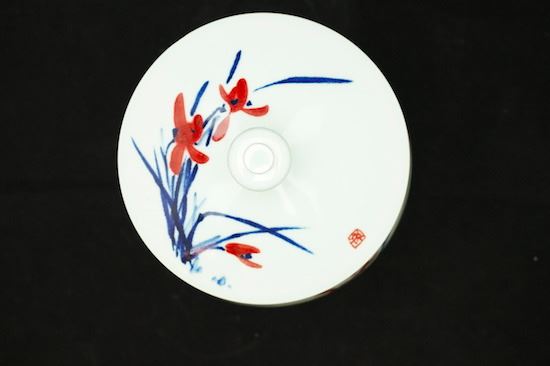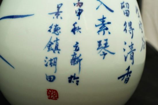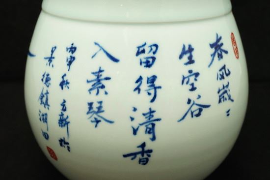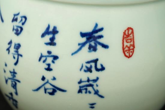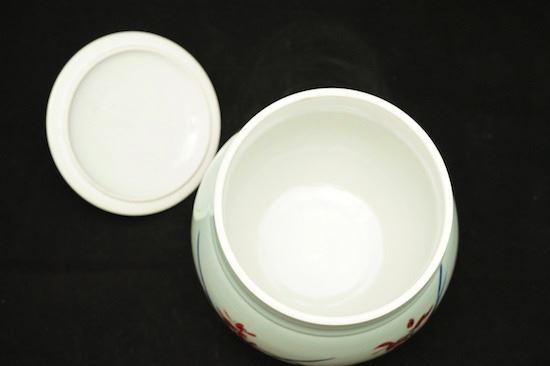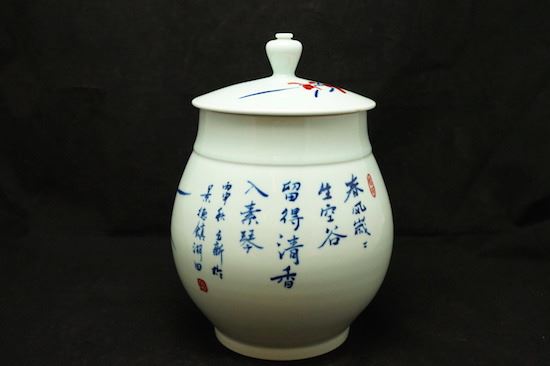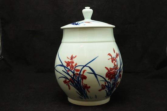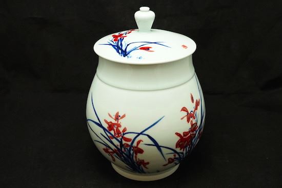 "Jing De Zhen" Blue and White Underglazed-Red "Floral" Jar and Cover with Certification. Artist: Sun