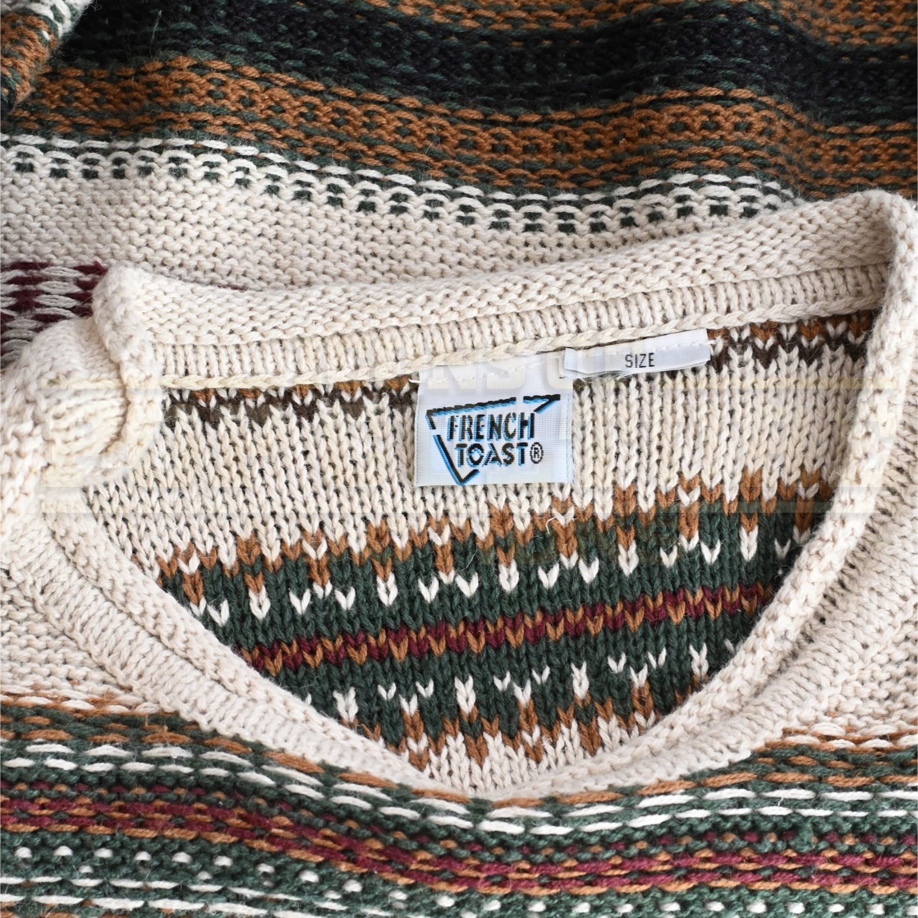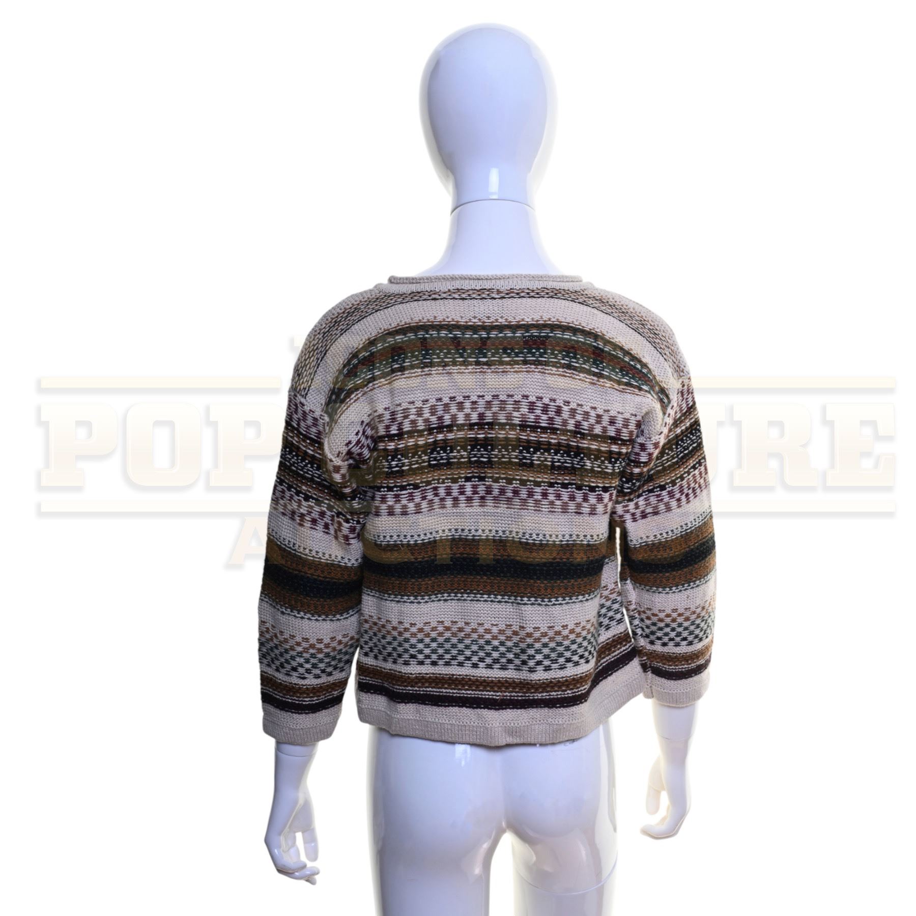 Featuring a distinctly mid-’90s knit pattern in warm, earthy tones of cream, green, brown, and burgundy, the sweater embodies the cozy, family-oriented aesthetic seen throughout the film. Manufactured by French Toast®, the garment displays the exact look and texture associated with Jamie’s everyday wardrobe as he navigates the chaos of the holiday season.