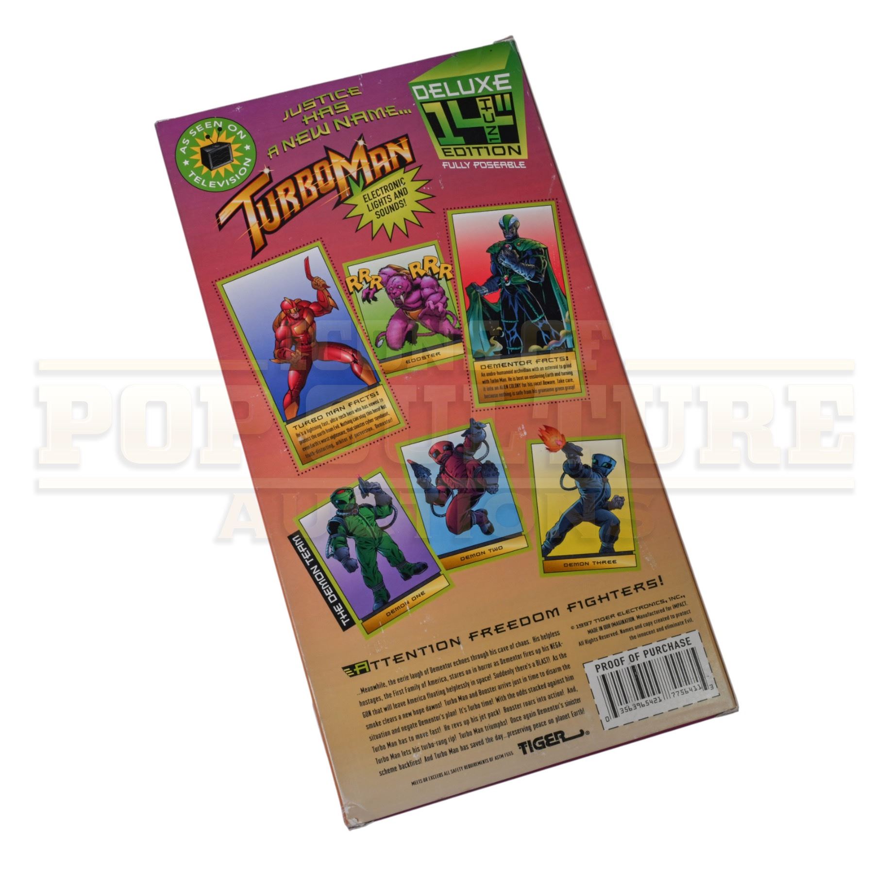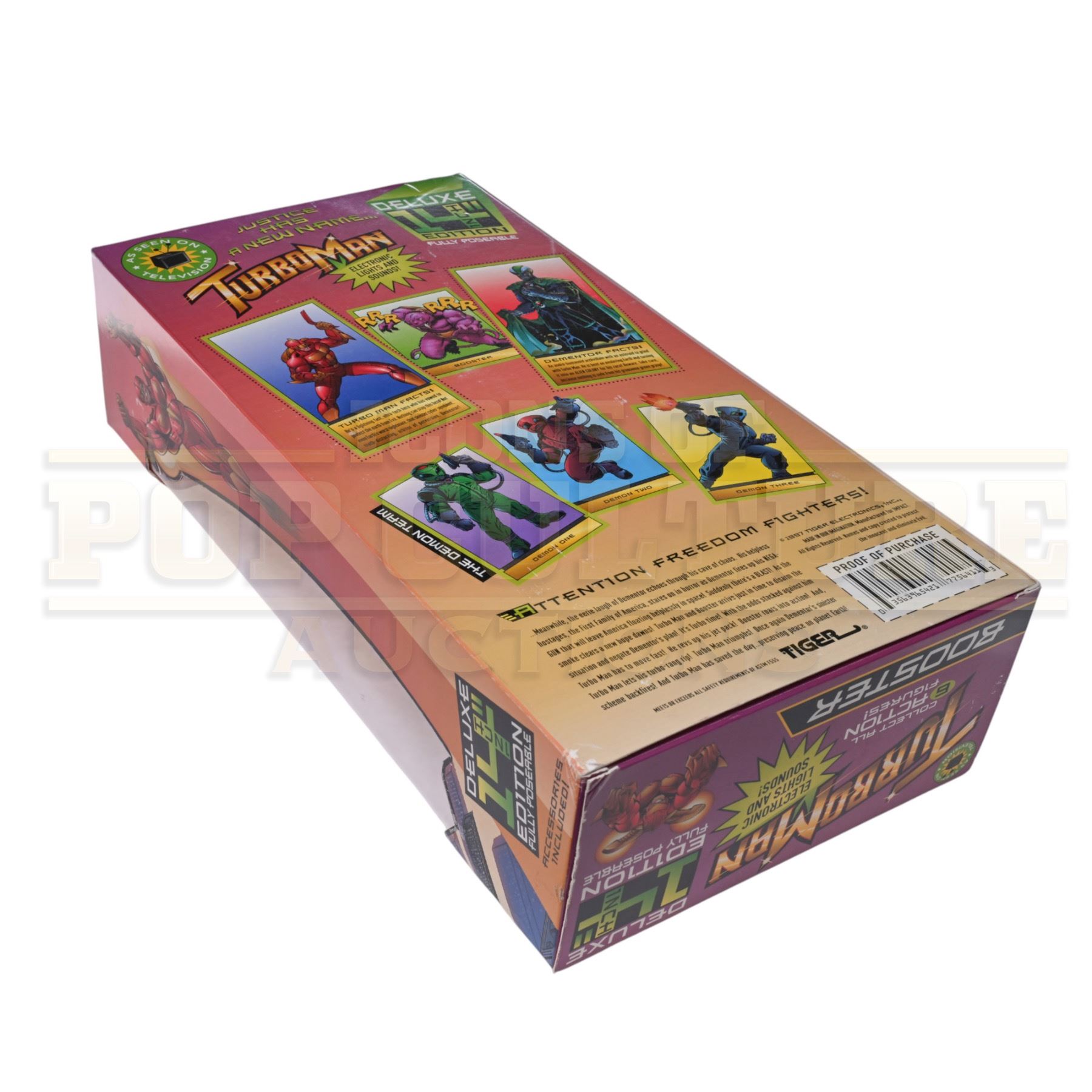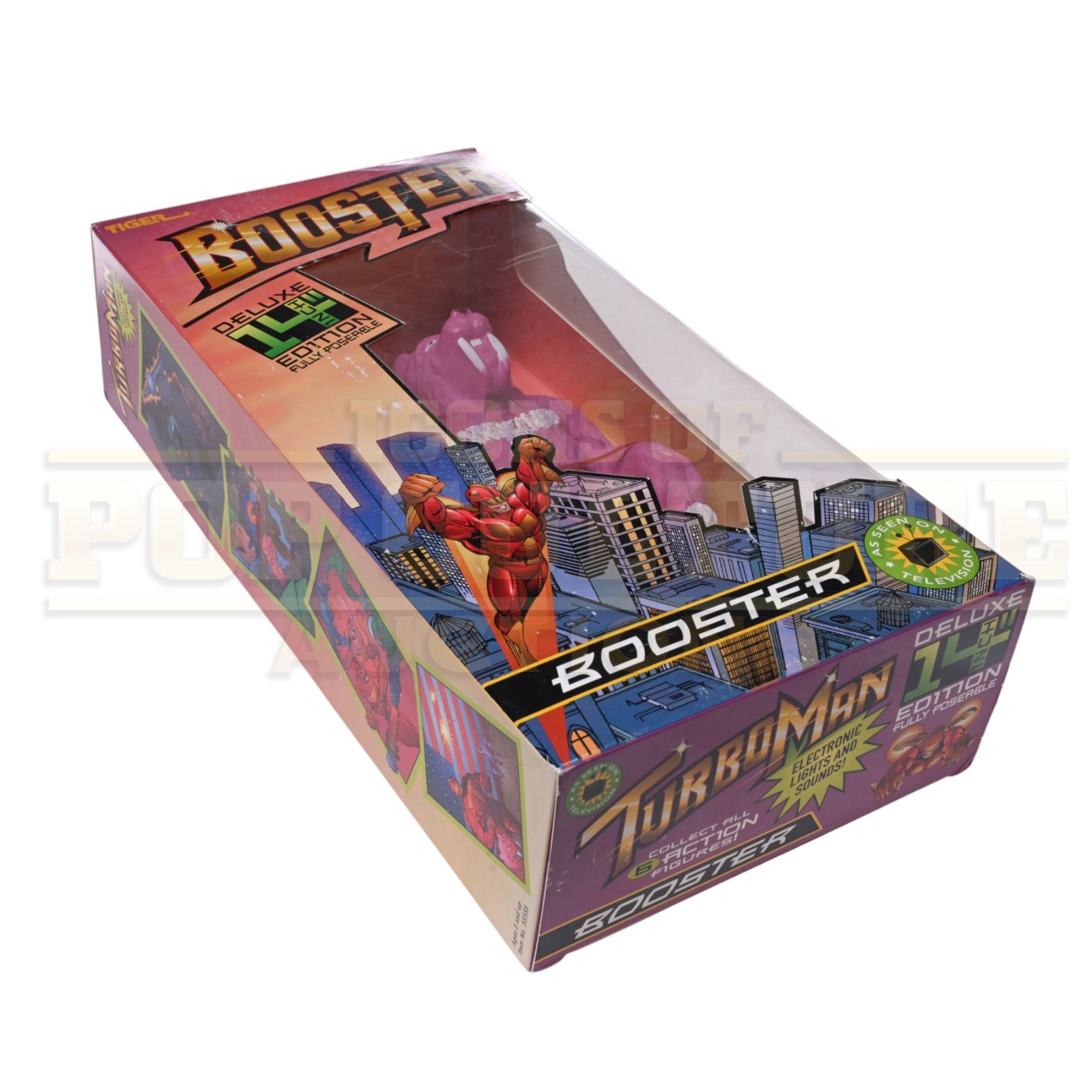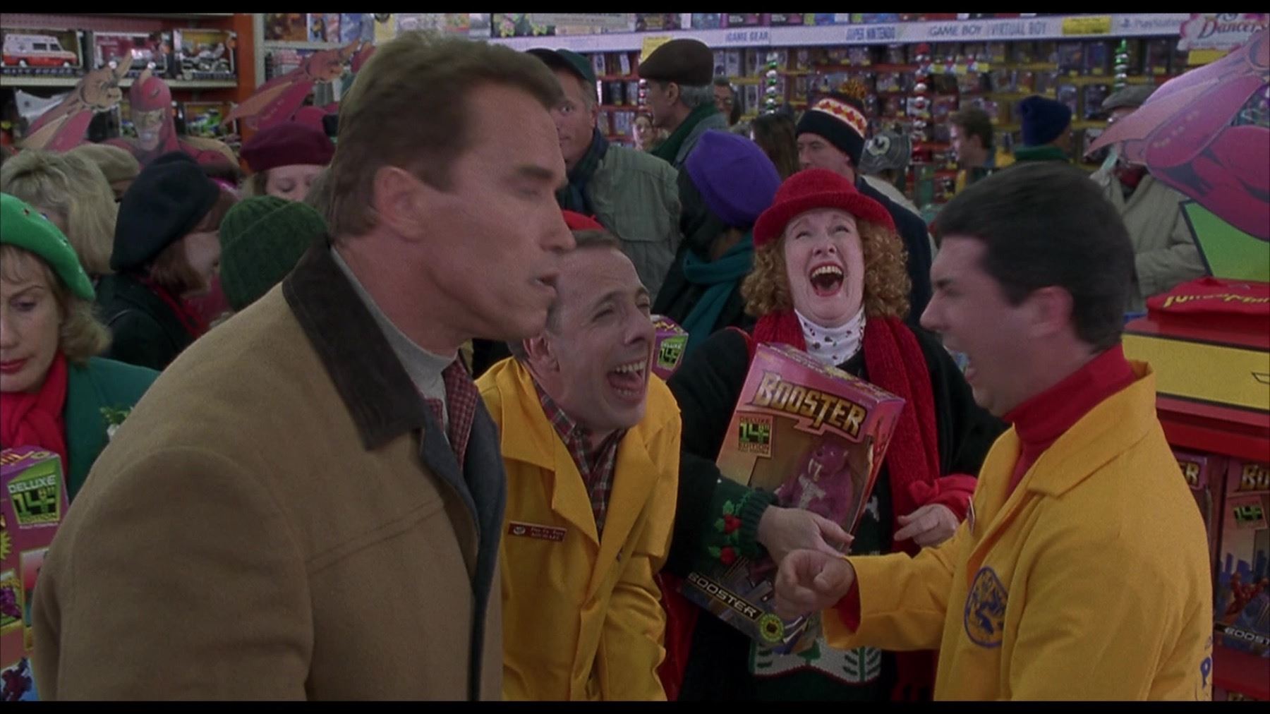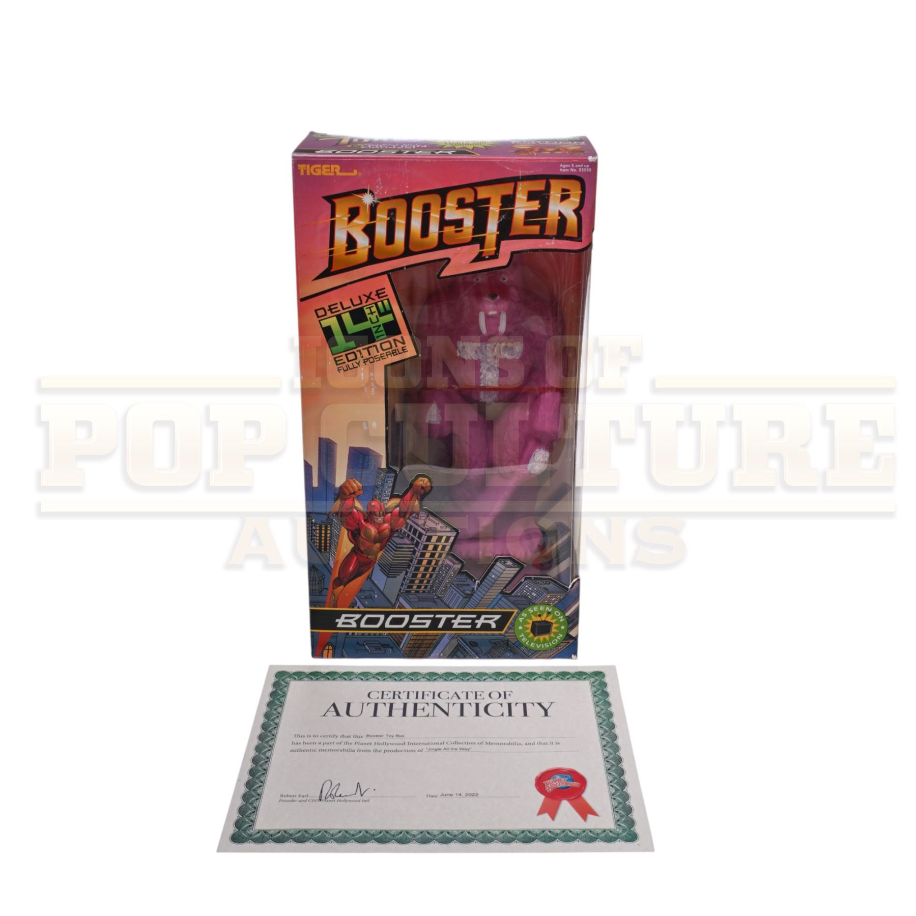 An original Booster Deluxe Edition prop toy and display box, custom-made by the production for use by various actors and as set dressing in the Arnold Schwarzenegger holiday classic Jingle All The Way (1996).