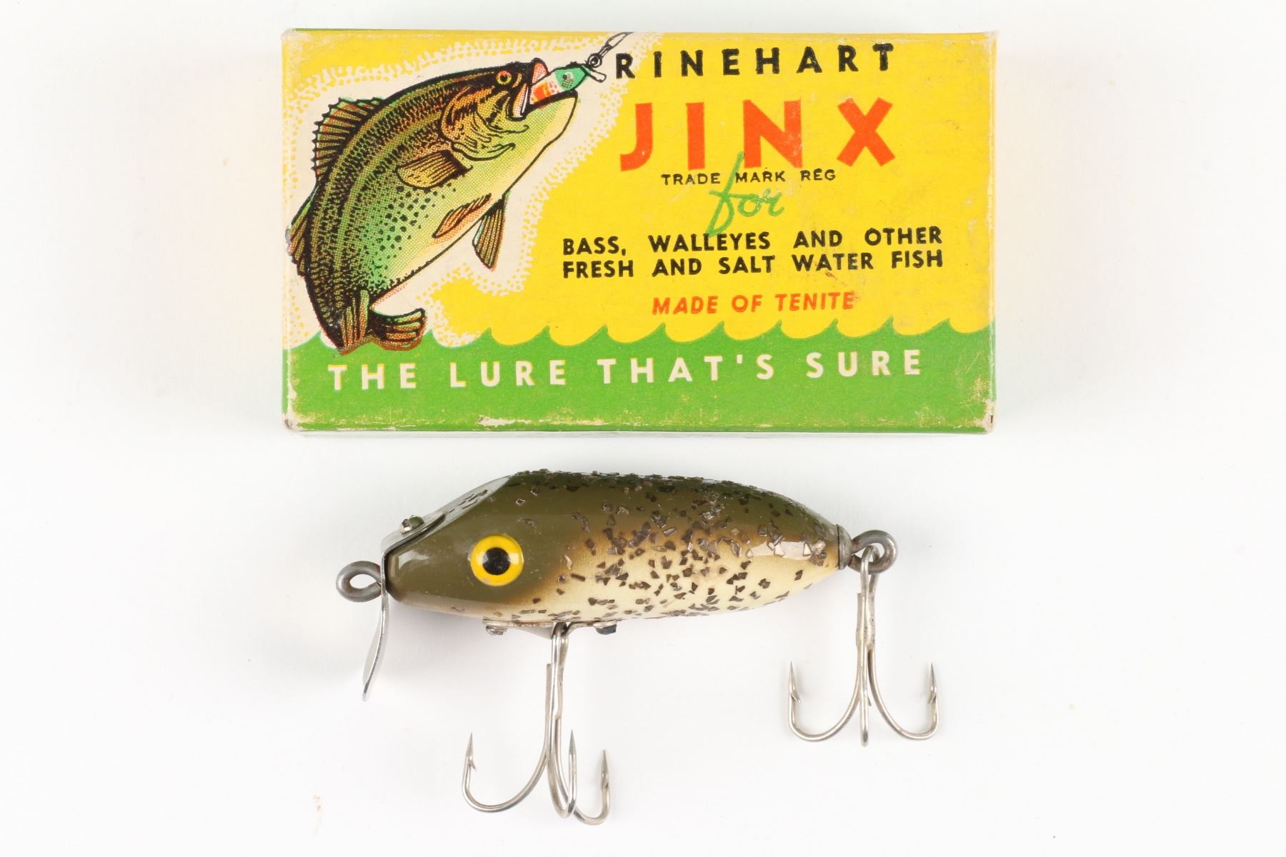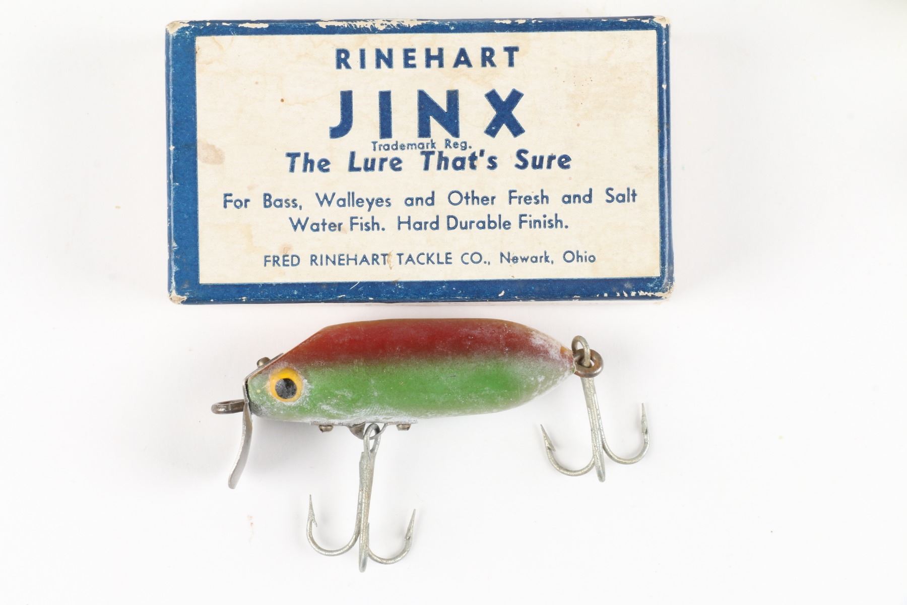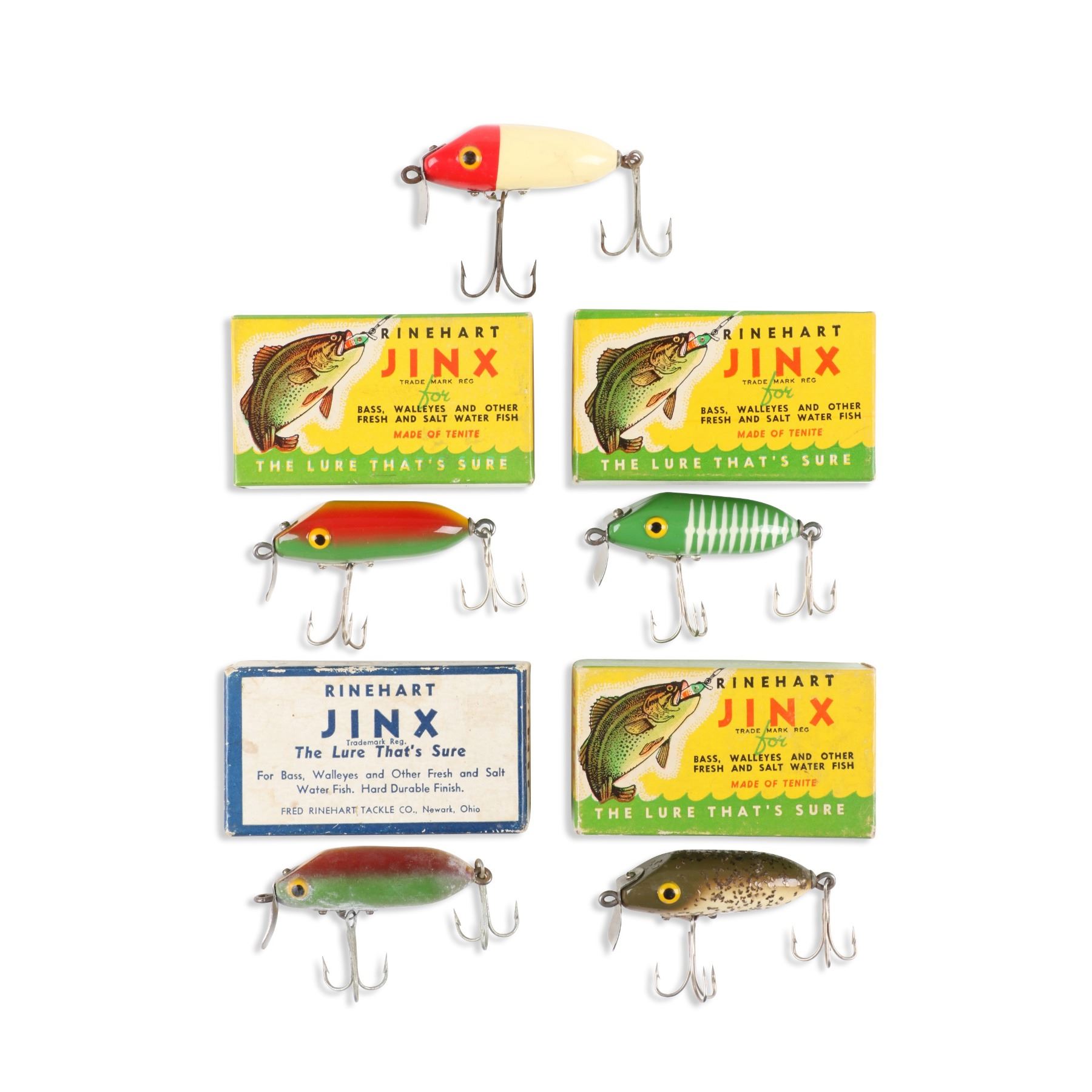 Fred Rinehart Tackle Co., United States. 1940s. 4 Boxed. Material: Tenite. Quantity: 5. Grade: G. 3.5" boxes Est. $125-150.